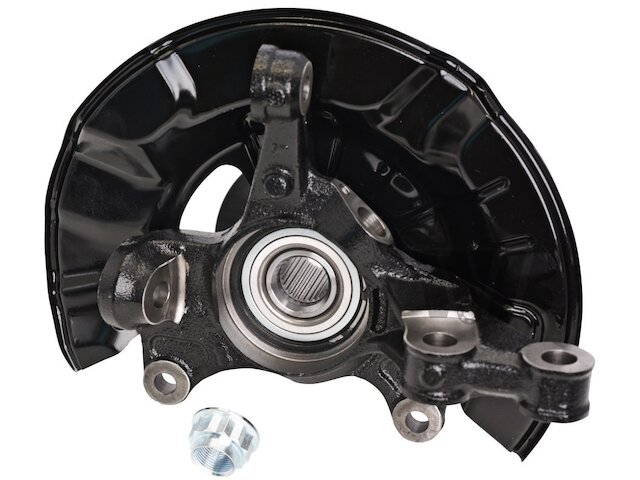 Suspension Knuckle Assembly -- Contains snap ring, bearing, knuckle, hub assembly, backing plate, backing plate mounting bolts, and axle nut