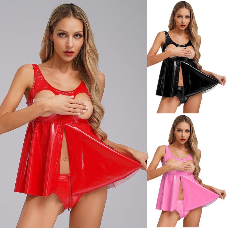 Women Top Rave Vest Wet Look Bra Lingerie Sexy Cosplay Sleeveless Hollow Out