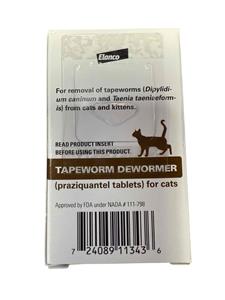NEW 3 TABLETS ELANCO TAPEWORM DEWORMER PRAZIQUANTEL FOR CATS & KITTENS OVER 6 WEEKS. EXPIRATION 04/2028