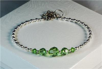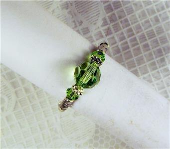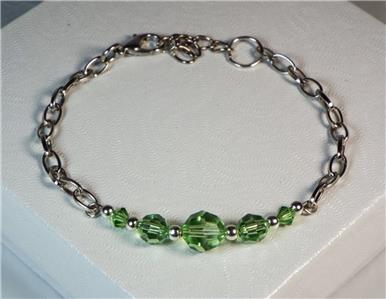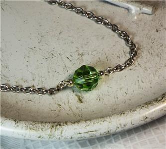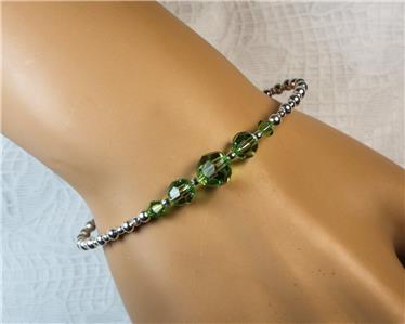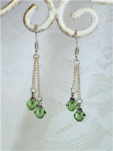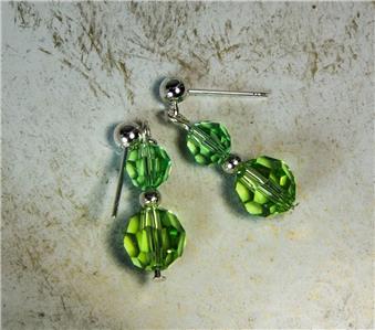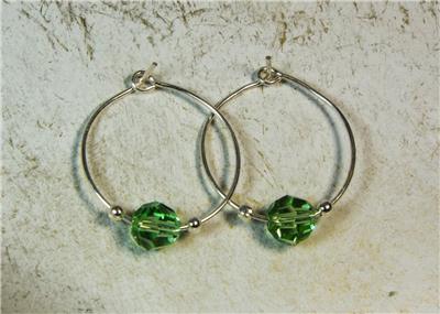 CYNTHIA LYNN "CELEBRATE" STERLING SILVER SWAROVSKI PERIDOT GREEN CRYSTAL AUGUST BIRTHSTONE HOOP EARRINGS .75" 6 MM crystals. Includes drawstring gift bag. Matching pieces pictured are sold separately
