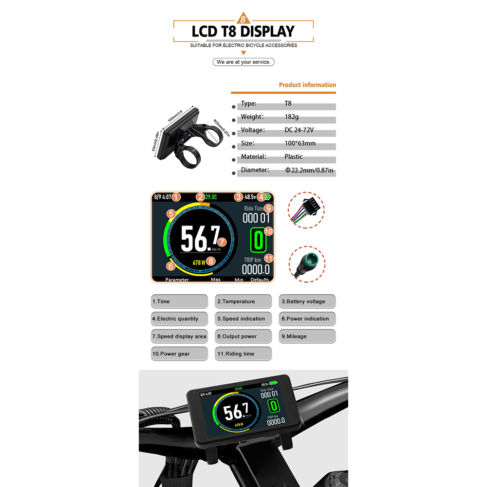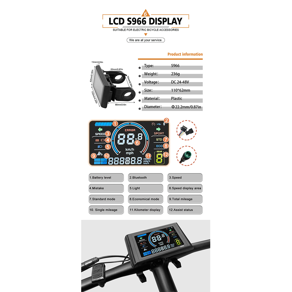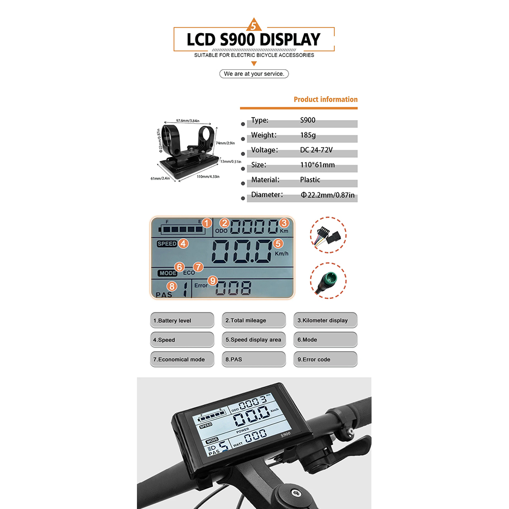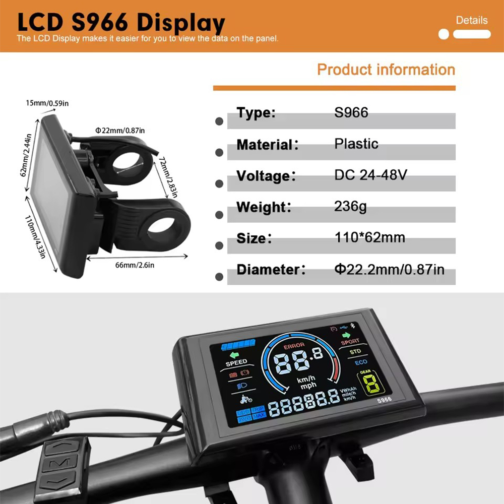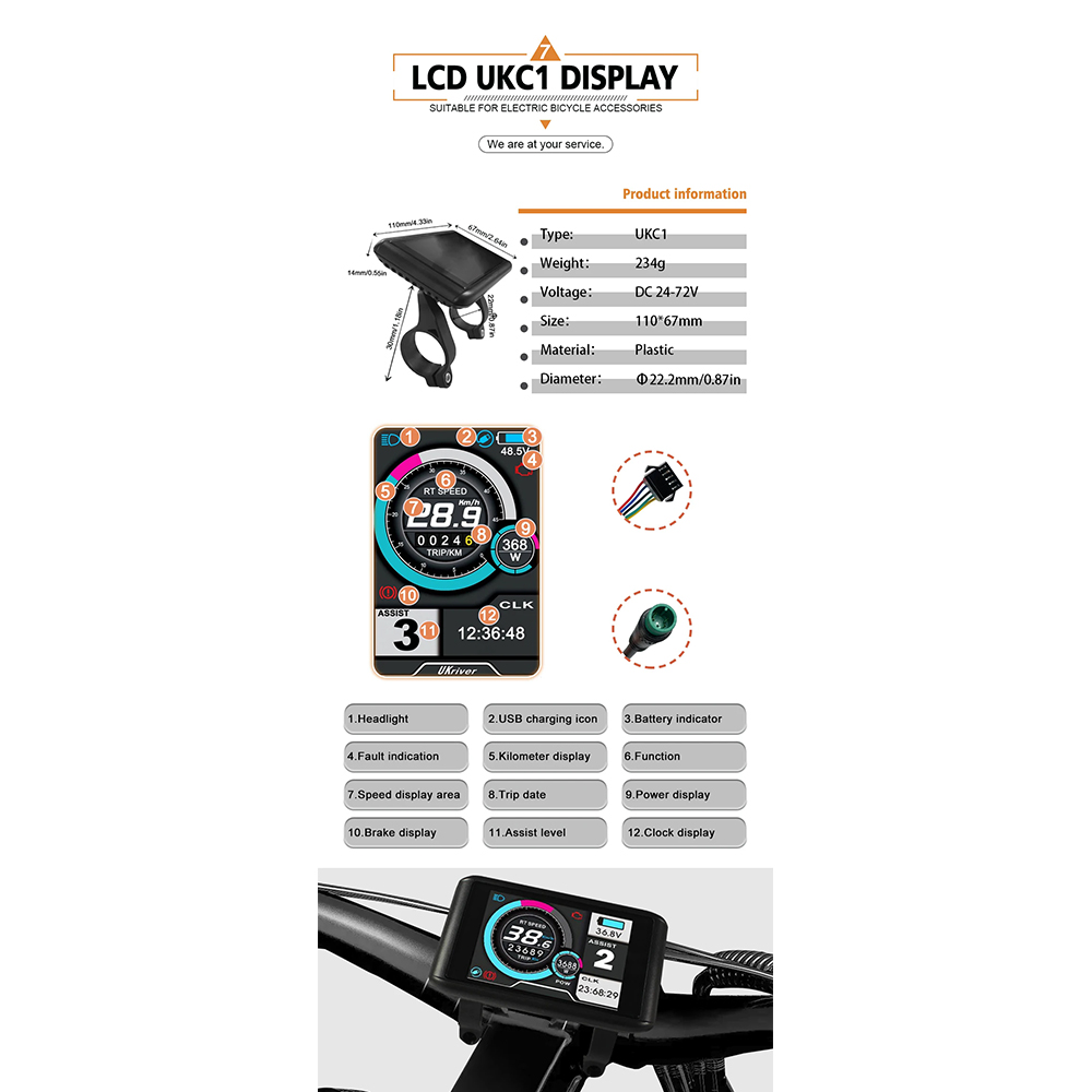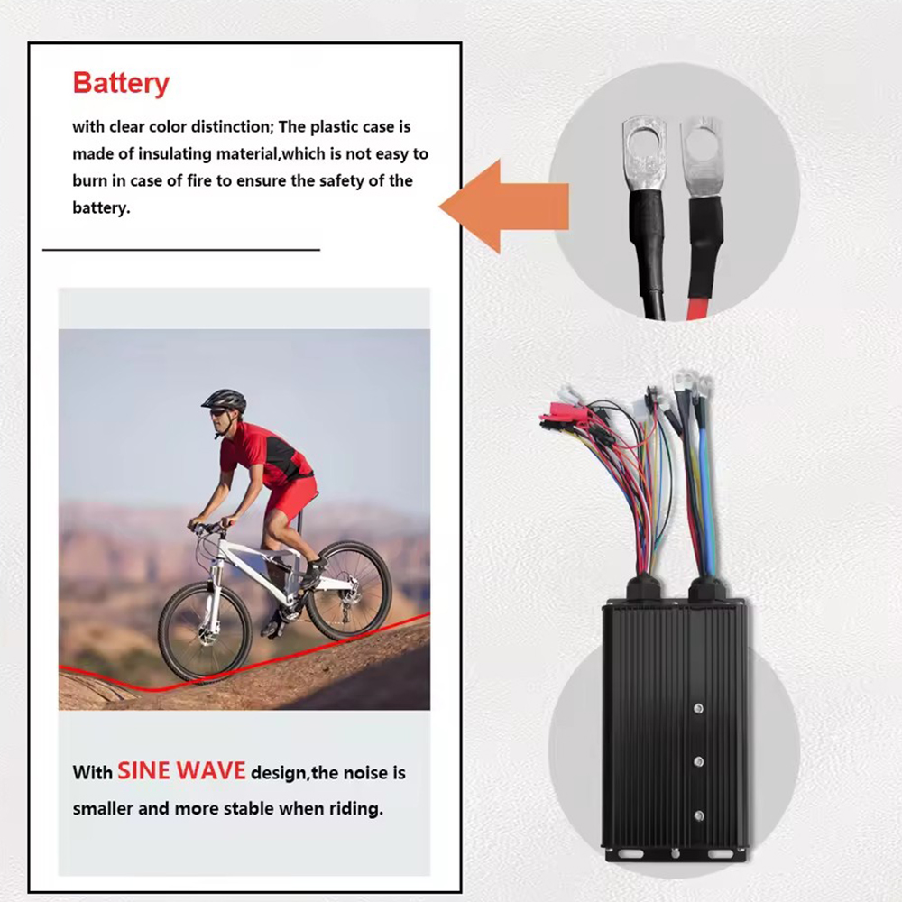 100A Controller : 1.Maximum current:100±1A 2.Size:225*101*60 mm 3.Weight:1474g 4.Mosfets:24 mosfets 5.Cable length:all about 13-18cm 6.Rated voltage:DC48V/72V 7.Speed set:1.1-4.2V 8.Rated current:50A 9.Features: a.The Display is easy to install, with clear screen display and powerful functions b.Brushless Hub Motor for 3000W/5000W, Electric Bike, Electric Bike Kit c.The controller has a headlight function, making it more convenient and safe for you to ride at night LCD Display 1.Type :LCD Color Display 2.Voltage :24V 36V 48V 52V 60V 72V 3.Plug :5Pin Female SM Plug 4.Holder Diameter :φ22mm 5.Cable Length:30cm ( SM ) 6.model:S900/UKC1/S966/UKC1+/UKS6/T8 300X Thumb Throttle: 1.Type: 300X 2.Working voltage (V): 5V 3.Output voltage (V): 0.8-4.2V 4.Turning angle (°): 0-70 5.Application: 24V 36V 48V 72V 6.Type: SM connector 7.Wiring mode: three-core wiring 8.Waterproof: IPX5 9.Material: PC+ABS 10.Color: Black 47PDD Brake Lever 1.Colour: Black 2.Cable length: 180cm/70.9in (normal connector) 3.Weight: 266g (a set) 4.Waterproof:IP76 5.Material: Aluminum Alloy Package includes: 1 * 1 set Sine Wave 3-Mode Controller