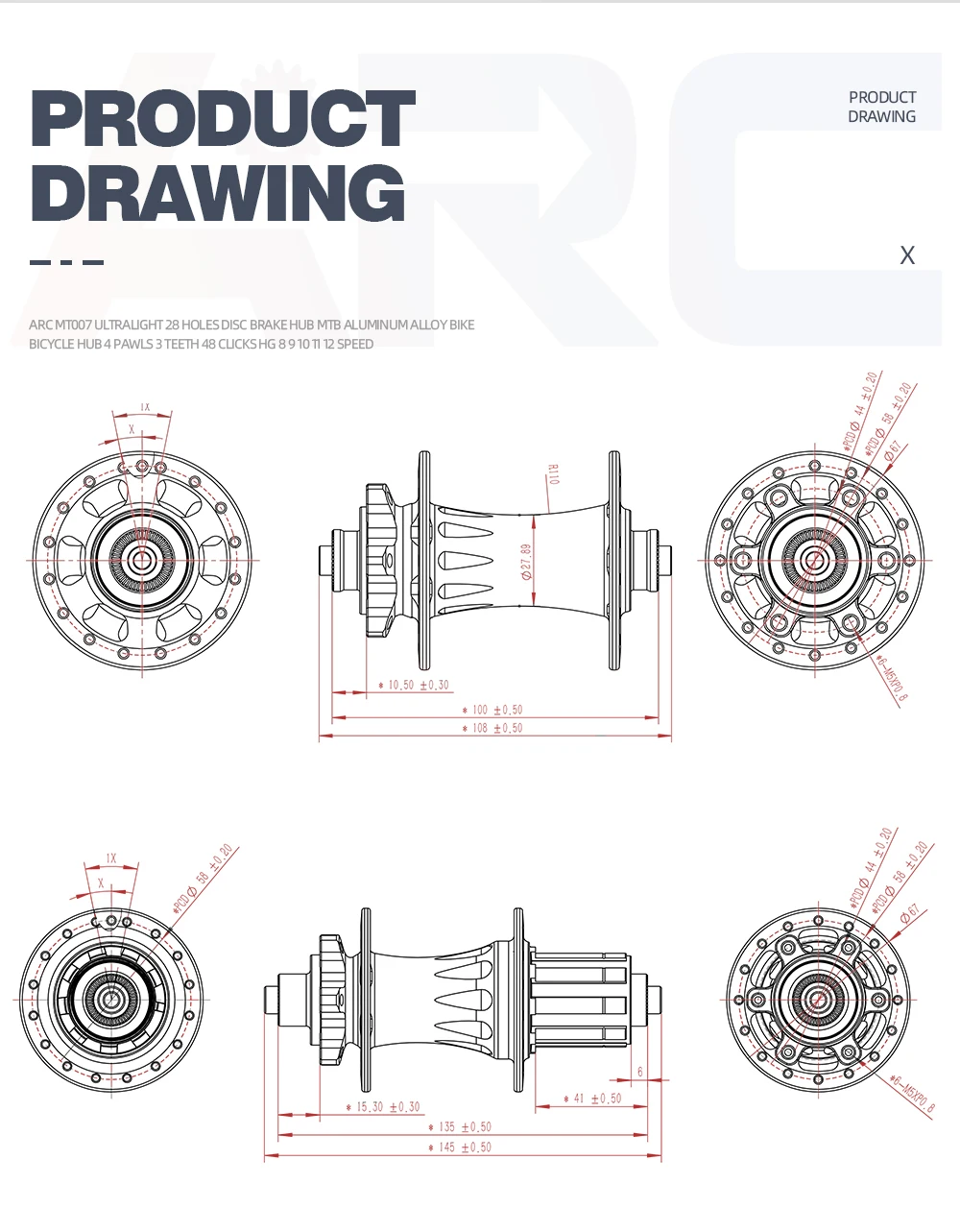 MT007F/R is the Newest product in ARC. Its front and rear tube shaft four in one structure, elbow wheel hub. Equipped with NBK Bearing, equipped with black freehub, compatible with 8 9 10 11 12 speed.