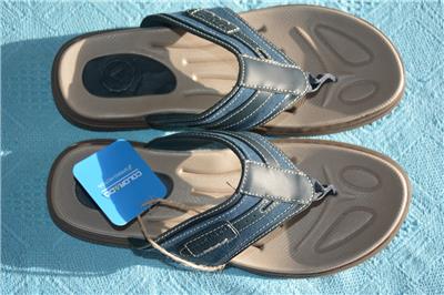 These are a quality STYLISH NAVY CRAZYHORSE LEATHER & FABRIC THONGS.