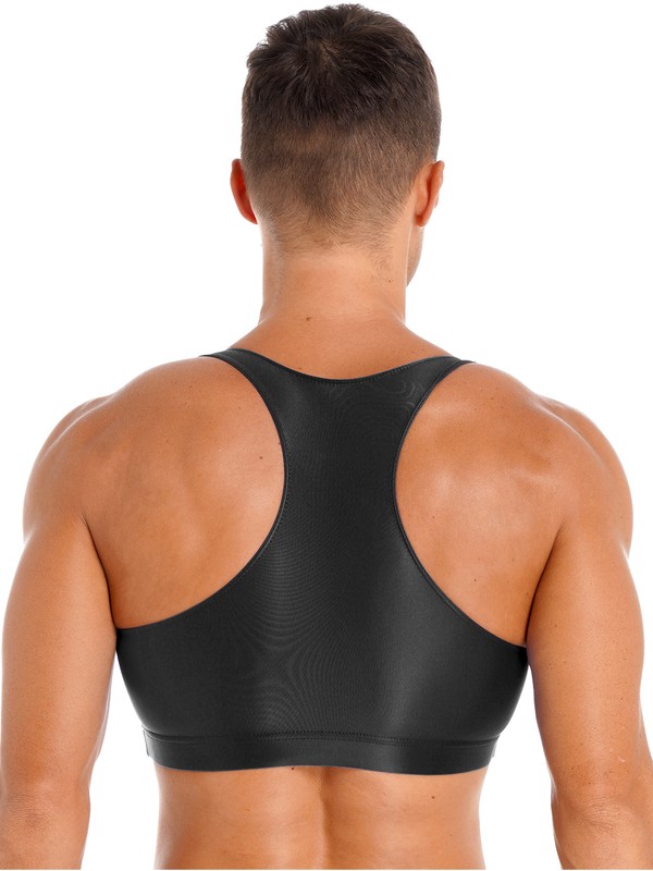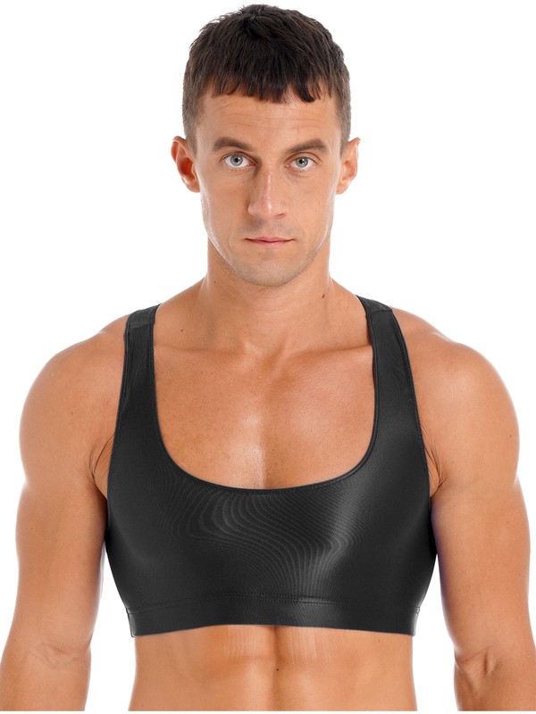 Mens Glossy U Neck Tank Tops Solid Color Sleeveless Crop Top Vest.