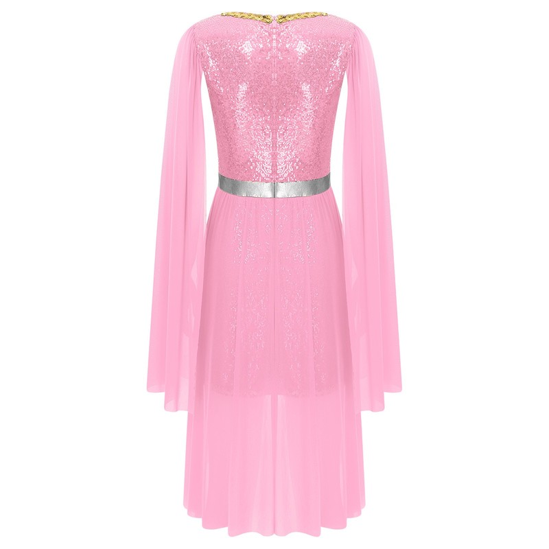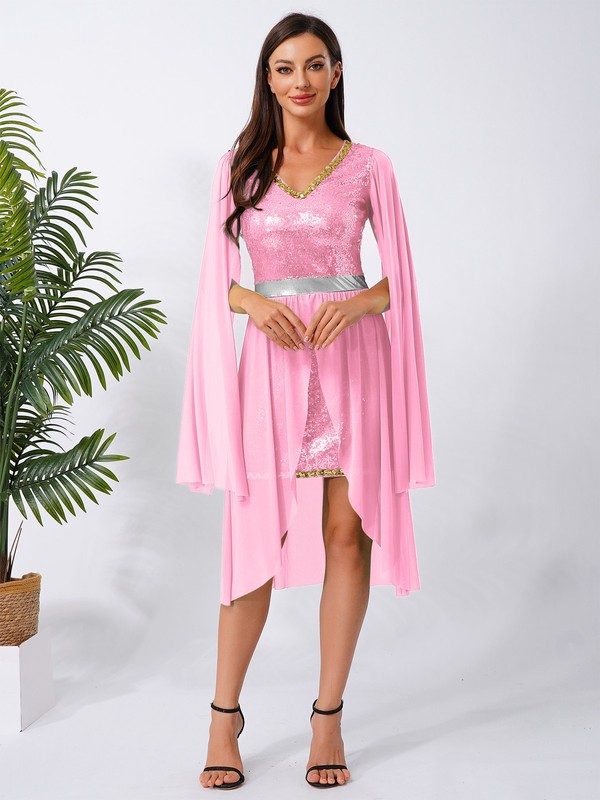 Crafted from a blend of polyester, sequin, and spandex, the dress is stretchy, shiny, and offers a comfortable fit for all-day wear.