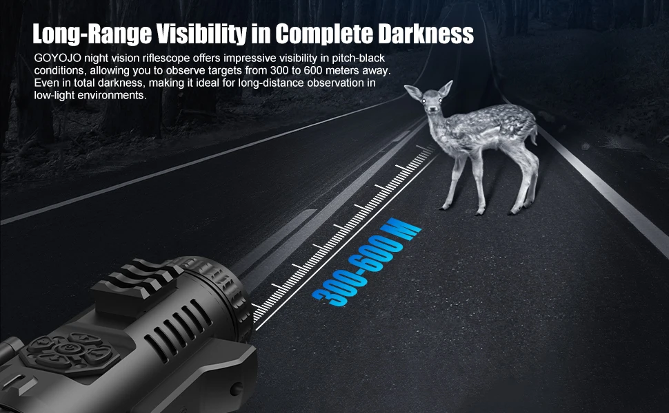 Exceptional Nighttime Performance: Ideal for observing in complete darkness or low light, this digital night vision scope offers a range of 300-600 meters in total darkness and infinite range in dim light. It includes a Type-C interface and video output, perfect for nighttime use.