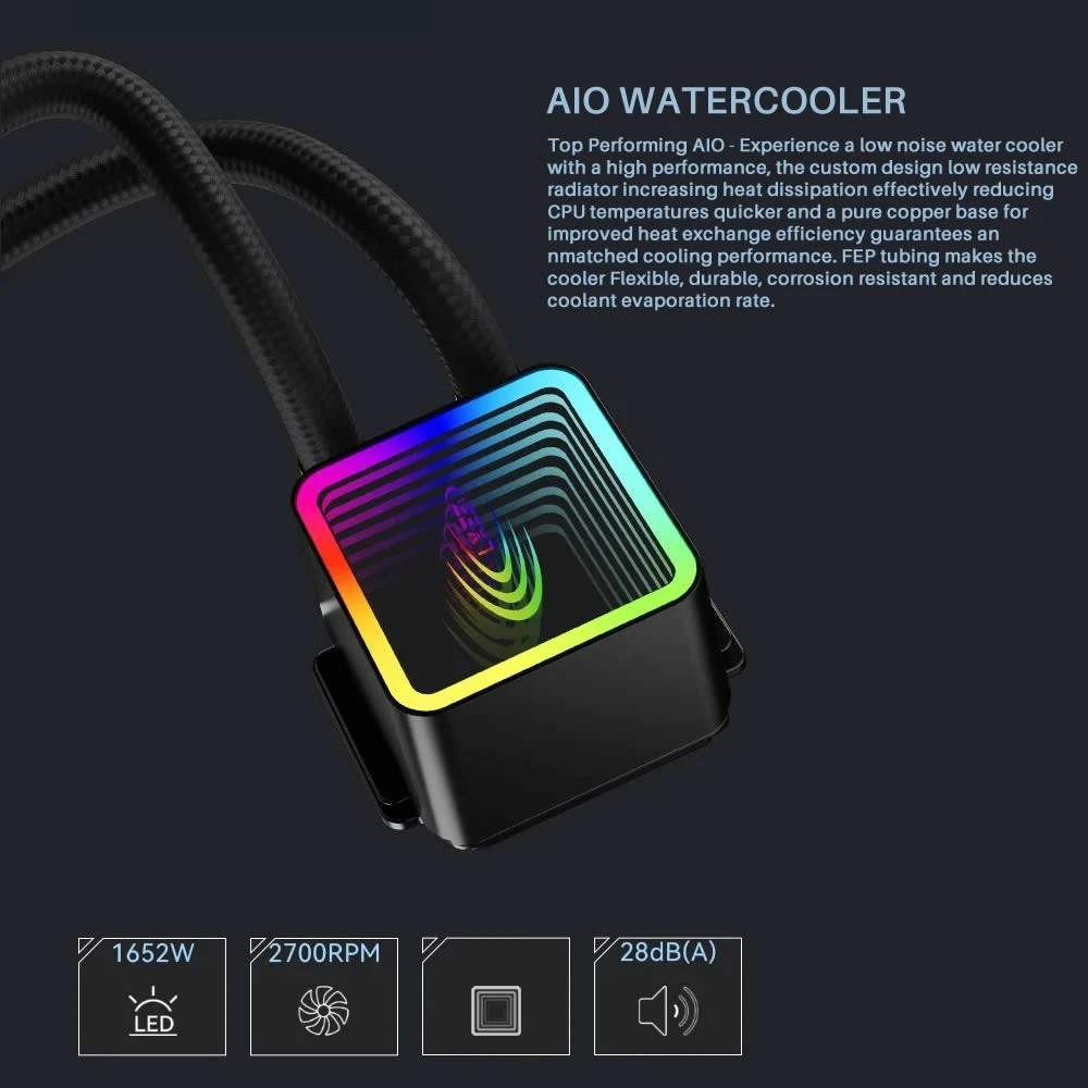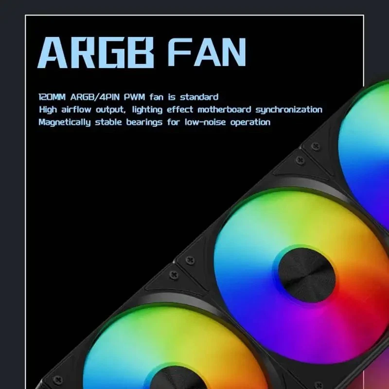with dual 120mm ARGB fans and a sleek ARGB CPU block, keeps