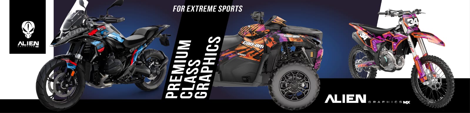 Great material alone is not enough to deliver an exceptional quality product in motocross graphics, which is why Alienreklama only uses tried and tested graphic templates.