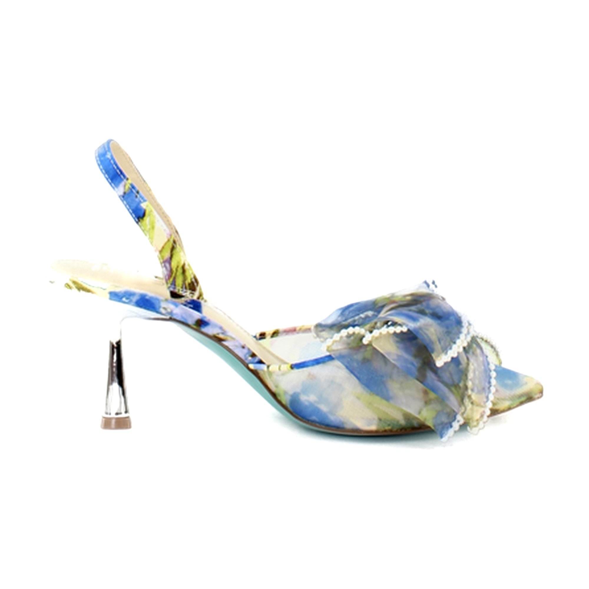Stride into any occasion with the Betsey Johnson Kelli, a chic slingback pump that exudes elegance. Crafted with a breathable mesh upper, it's adorned with a captivating oversized bow accentuated with beautiful pearls. This high-heeled beauty, with its head-turning design and comfort-focused features, is the perfect companion to elevate your style.