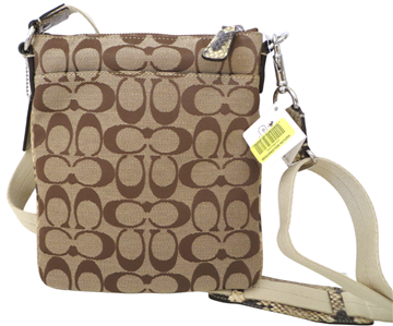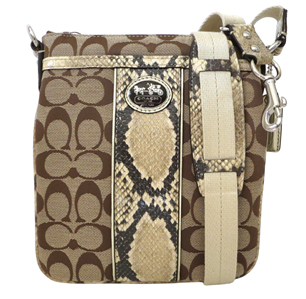 Coach "Sutton" Signature Jacquard & Python Leather Crossbody Purse