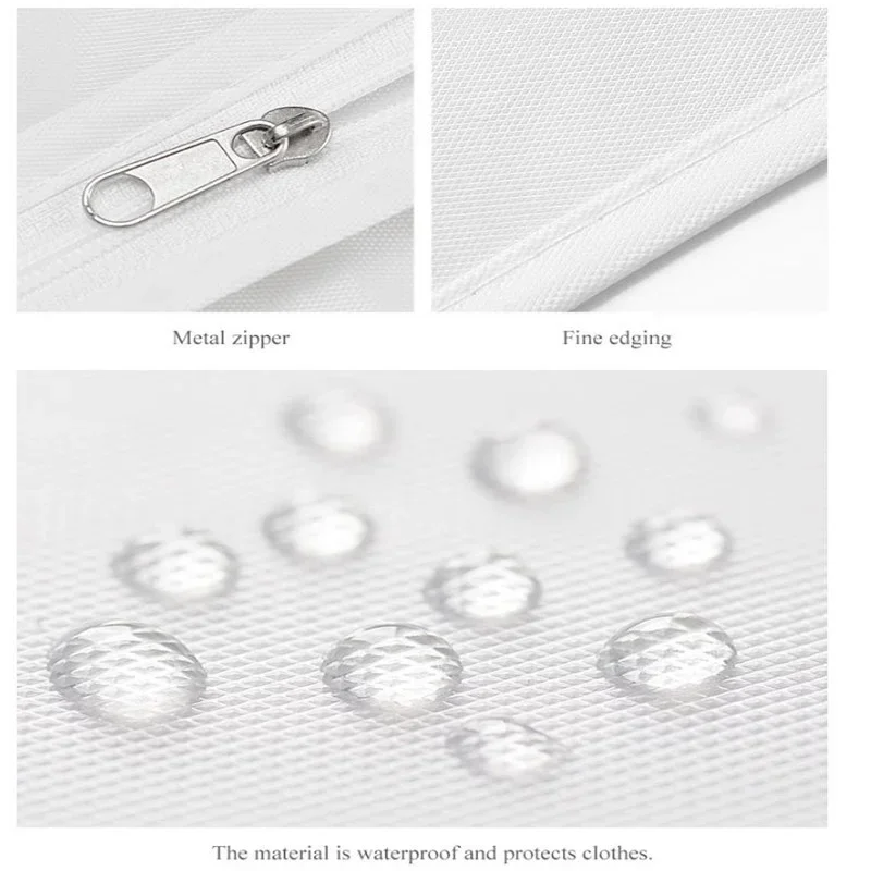 1.PEVA suit cover, using waterproof fabric, moisture-proof, mildew-proof and insect-proof, no need to worry about the clothes being damp and moldy, and the dirt can be washed;