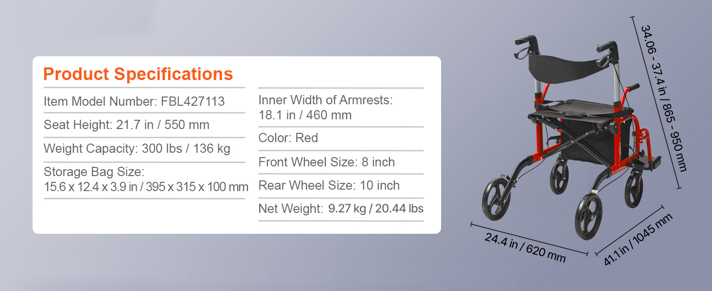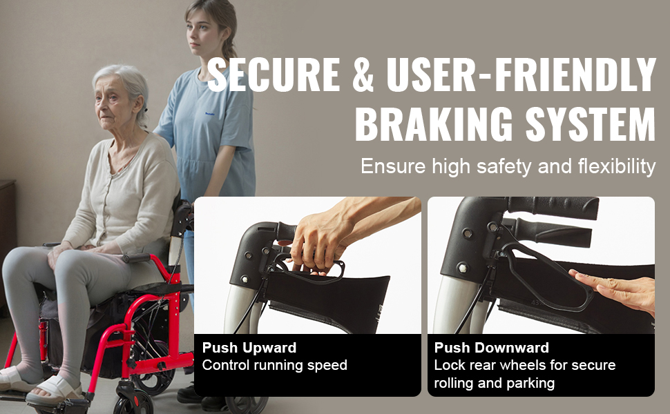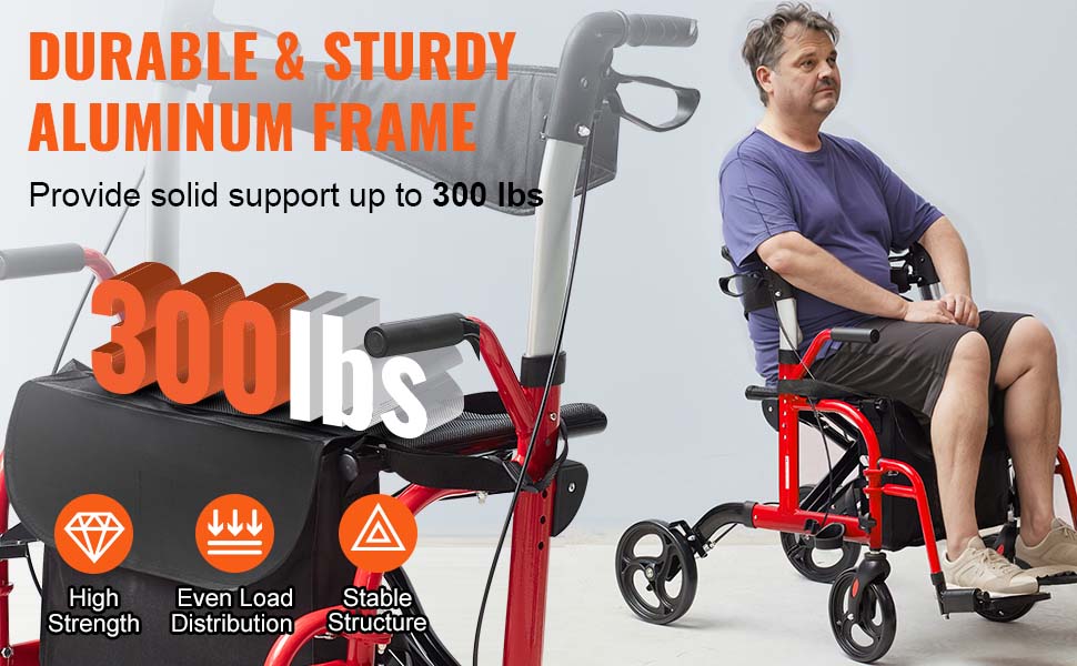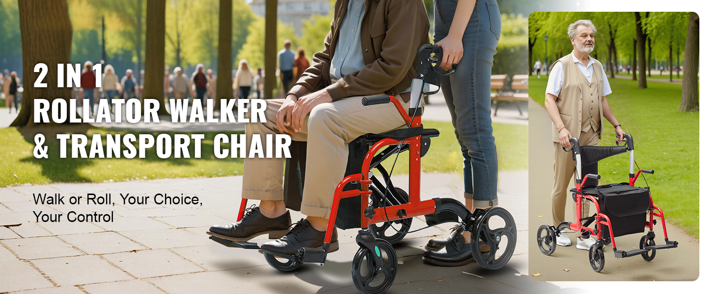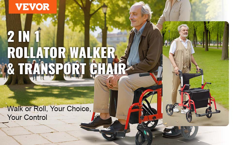 VEVOR's 2 in 1 rollator walker & transport chair offers seniors stable support and mobility, serving as both a rollator walker and a wheelchair. With its sturdy aluminum frame, 300lbs loading capacity and effortless folding, it provides flexibility and ease of use for daily activities.