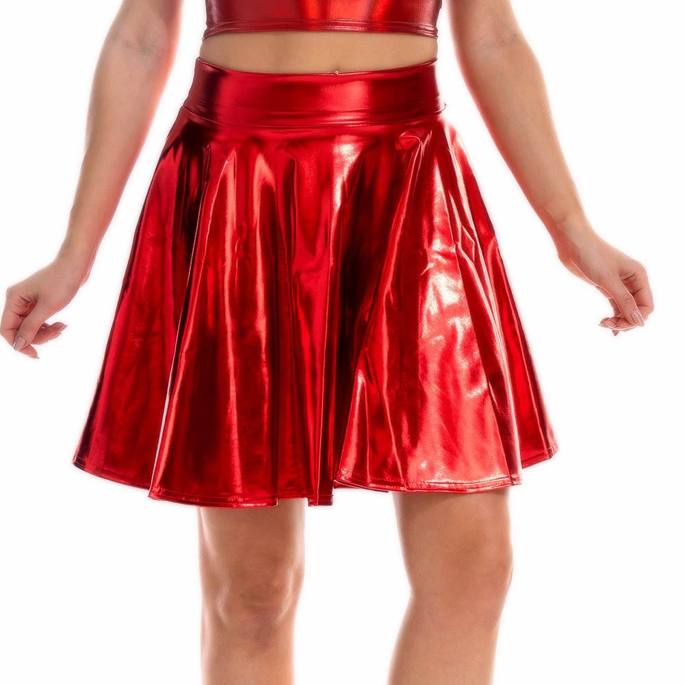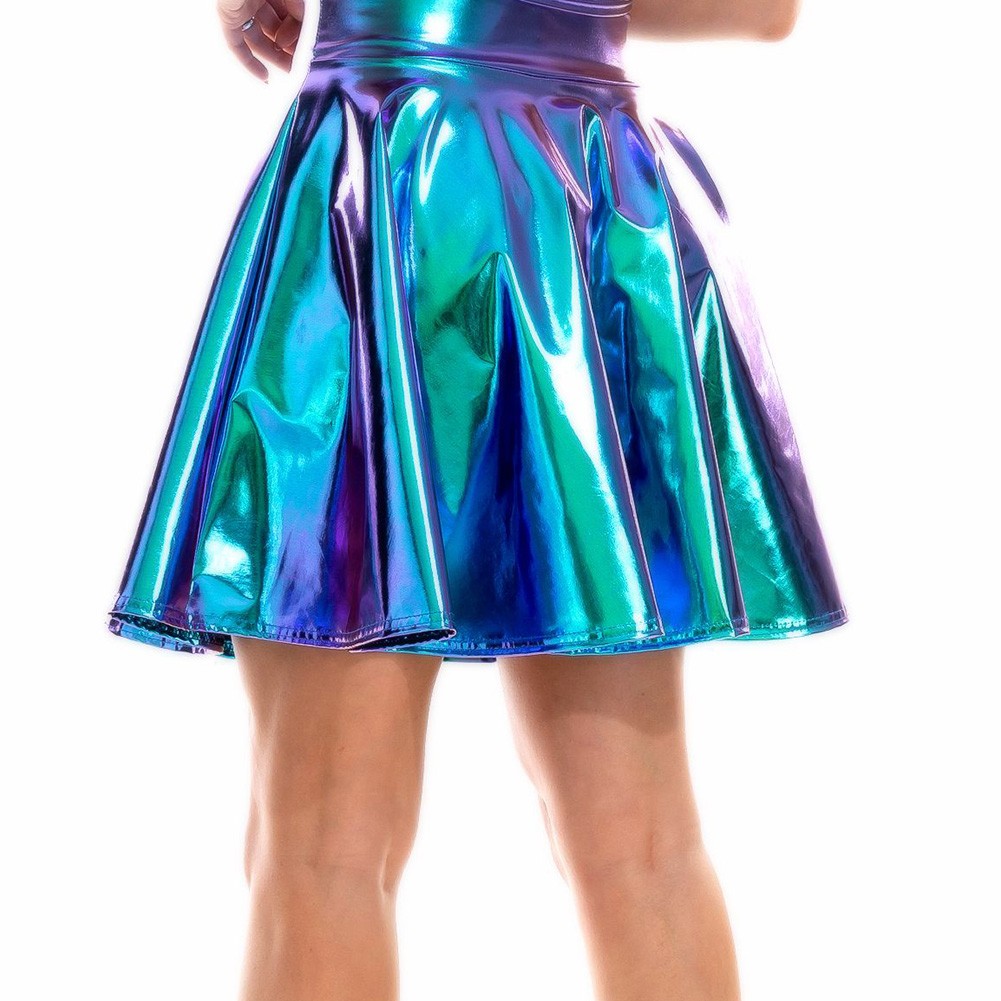 Caractéristiques du produit : mini jupe en cuir PU taille haute, étincelle de fête, jupe holographique jupe parapluie jupe plissée en métal Harajuku JK