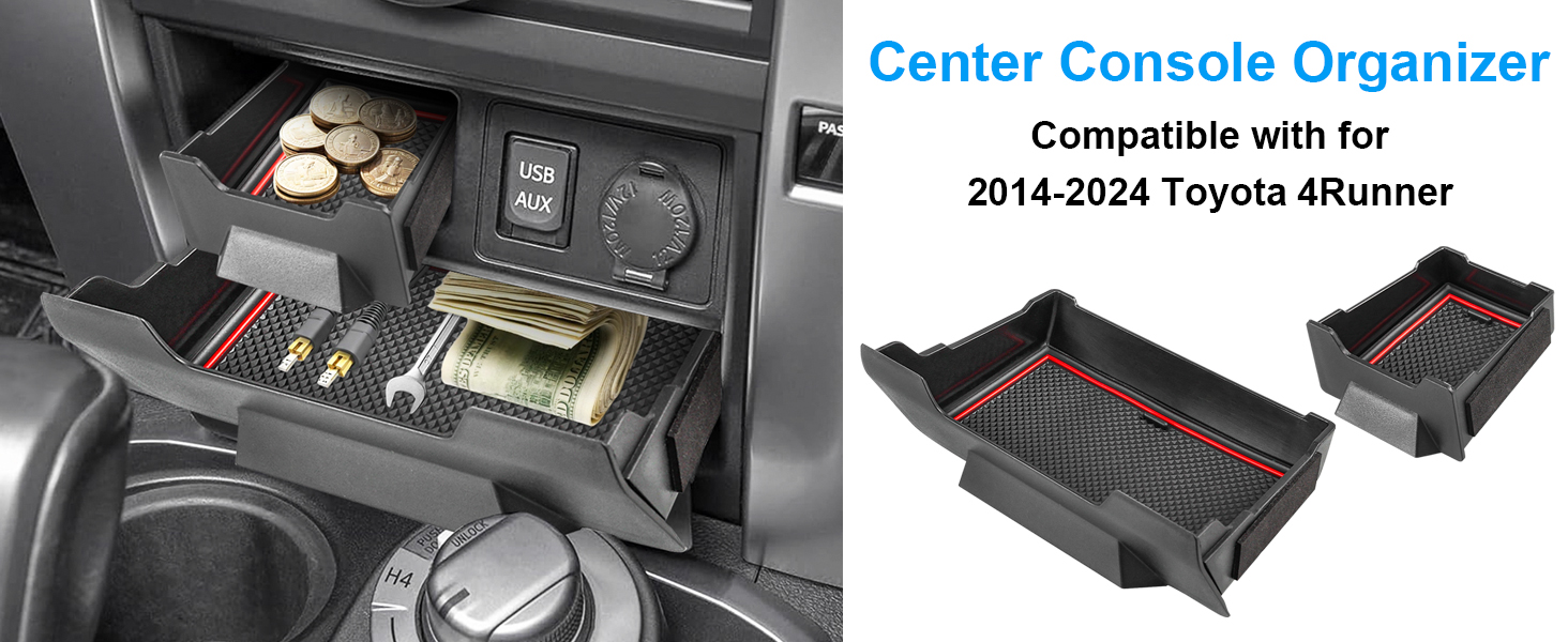 - Fitment. The center console organizer is fit for Toyota 4Runner 2014 2015 2016 2017 2018 2019 2020 2021 2022 2023 2024 (Please make sure your truck has these two small compartments).