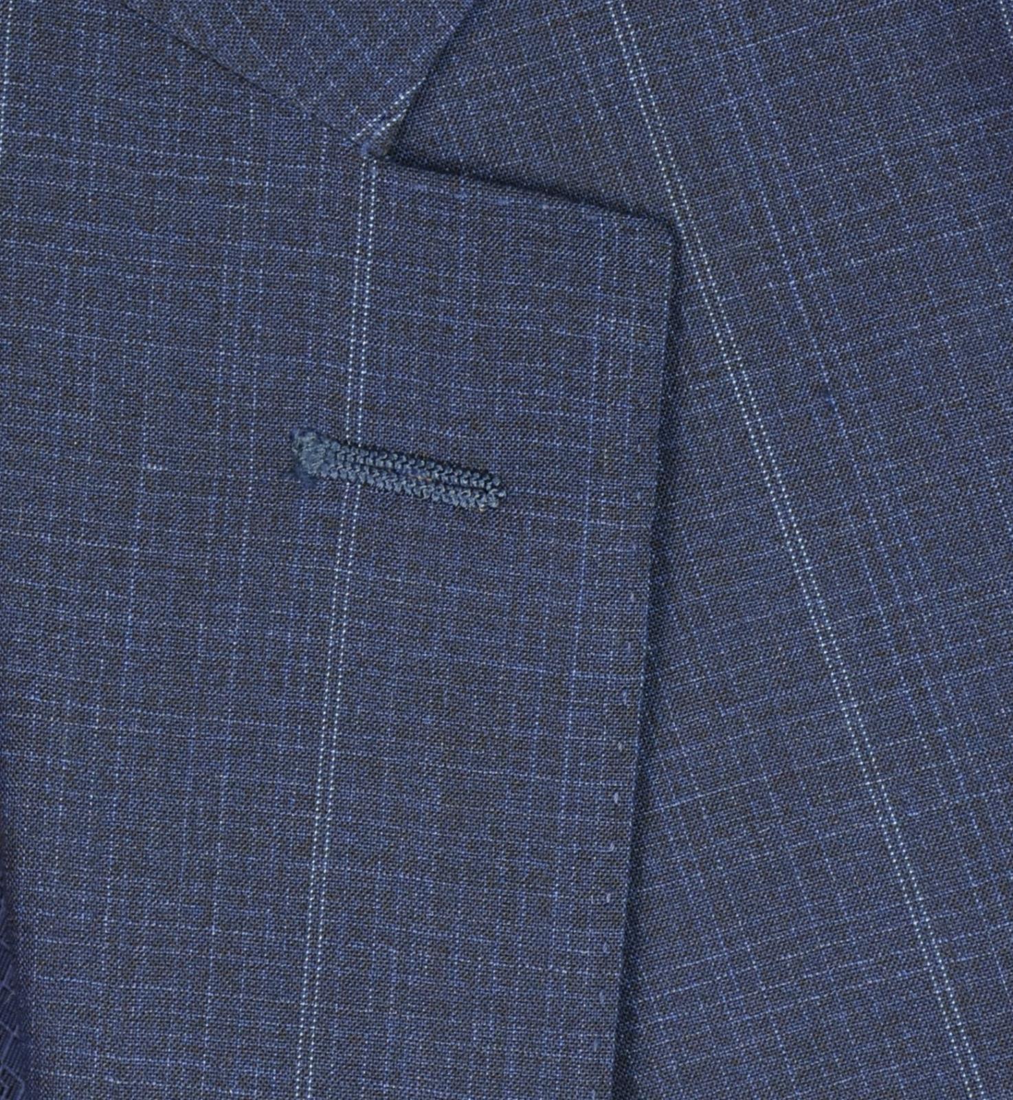 Notched lapel, Two-button closure, Chest pocket, two front pockets, Four nonfunctional sleeve buttons, Double vent, Fully lined, Made in Italy, 100% Super 150's wool; lining: 100% cupro, Dry clean