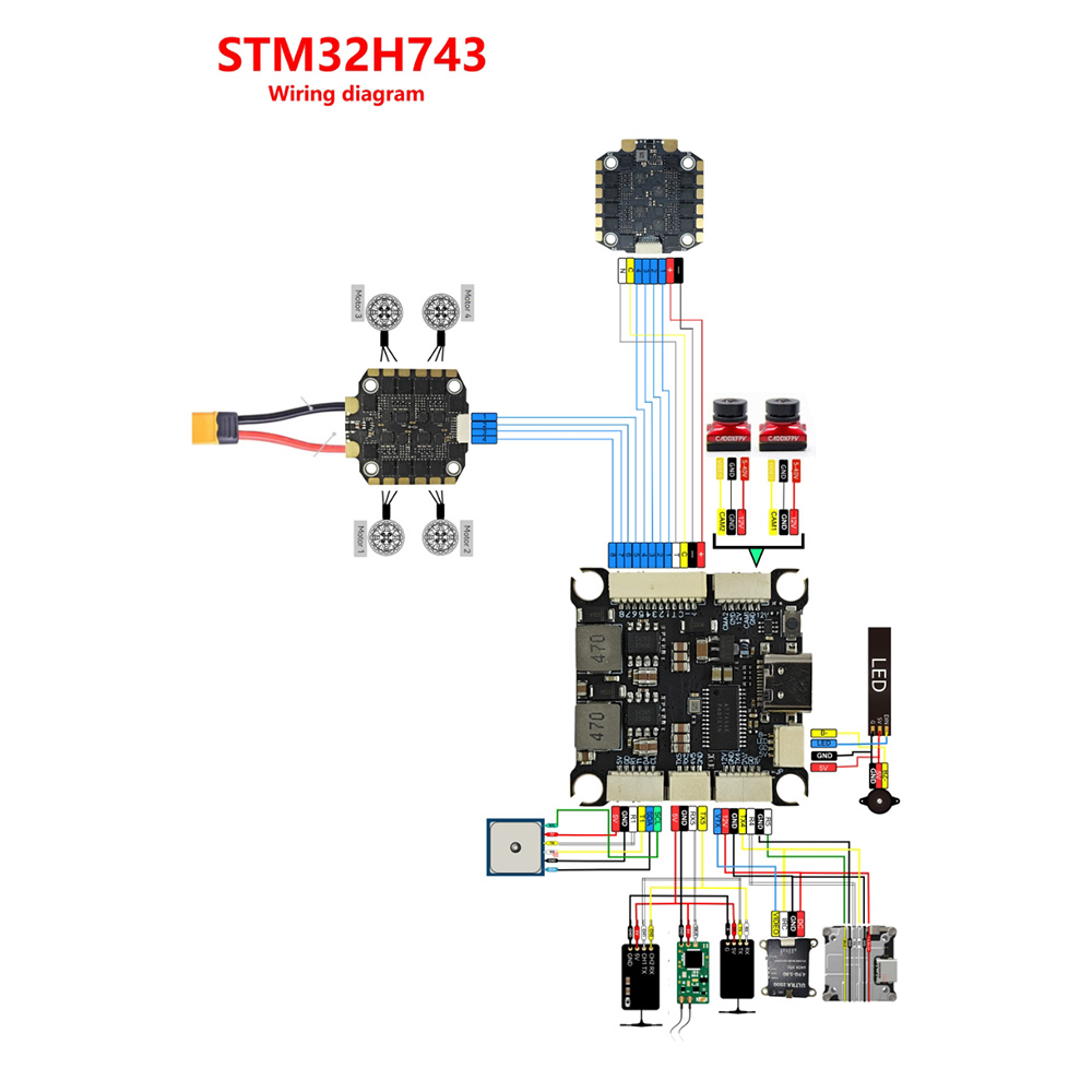 Description: The H743 flight controller offers 7 UART ports, 12 PWM outputs, I2C and an OSD to integrate additional sensors and peripherals, making it a flexible solution for complex UAV manufacturing.