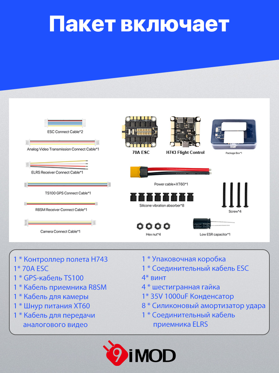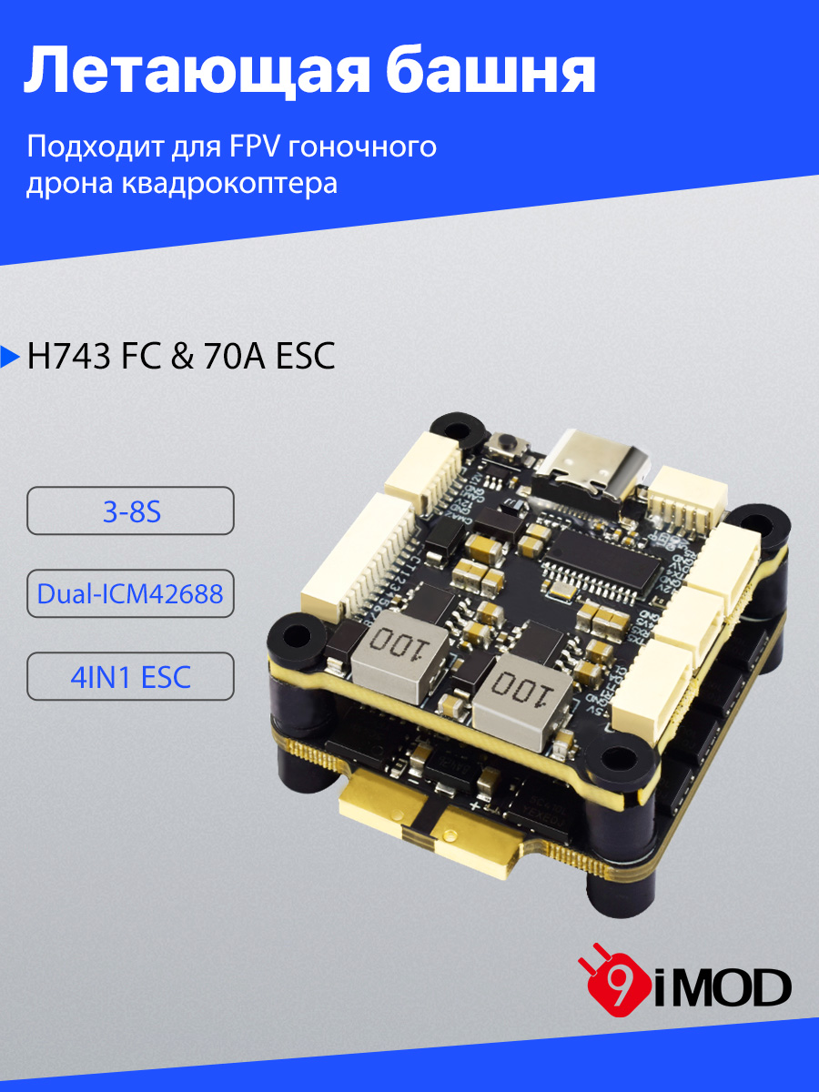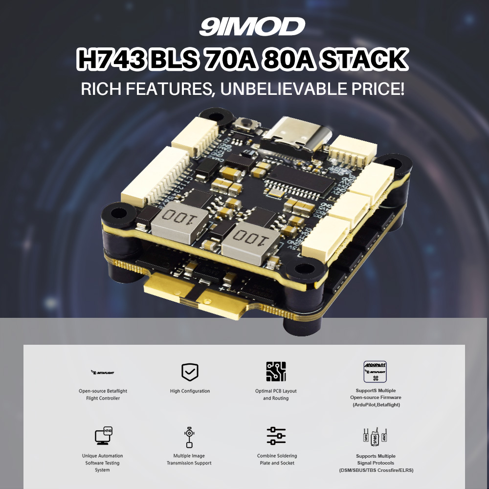 9IMOD H743 Flight Stack H743 Flight Control 4in1 70A/80A ESC 3-8S Lipo 30.5x30.5mm Dual ICM42688 Gyro 7 UART For RC FPV Racing Drone
