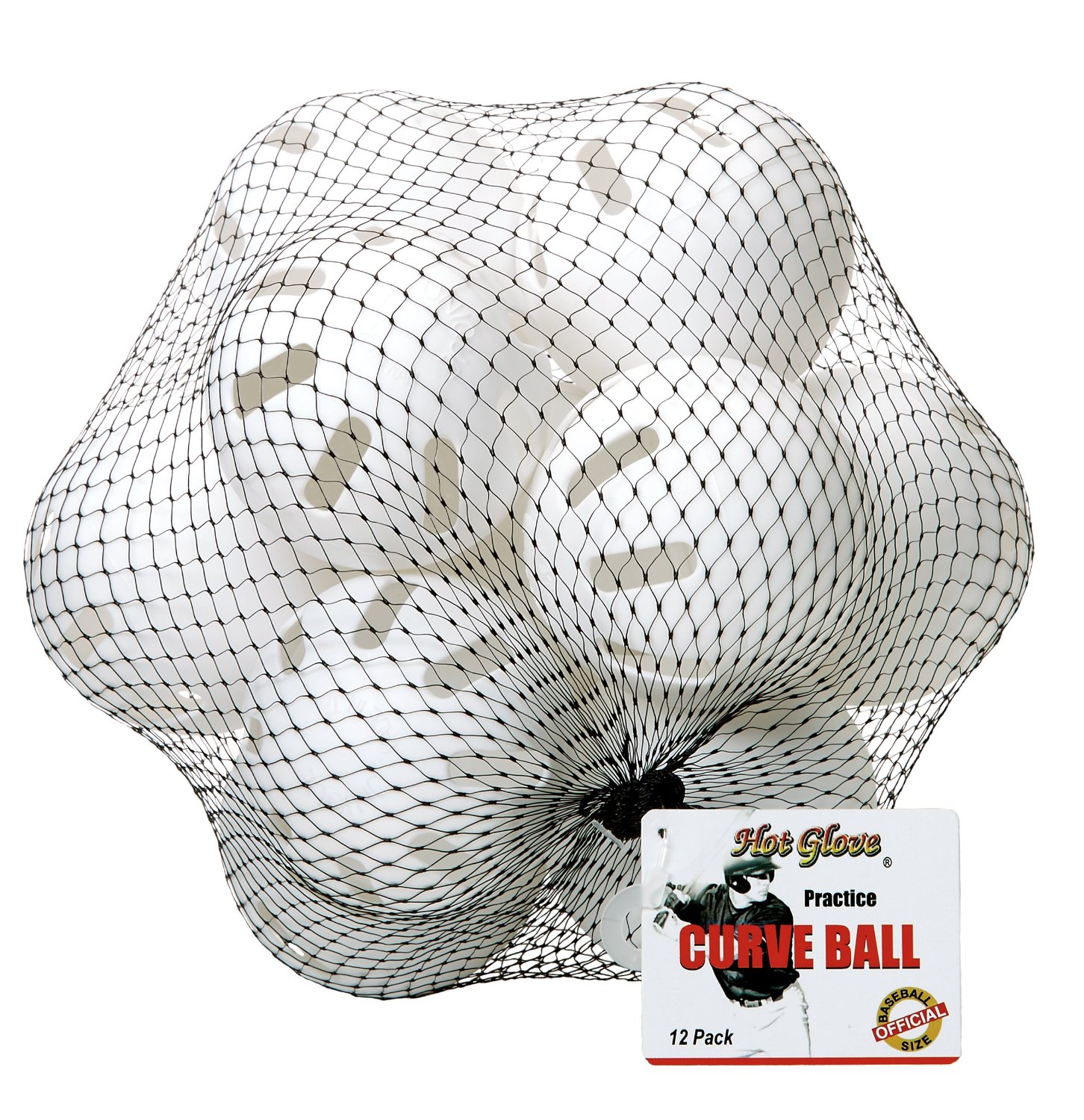 Hot Glove Pack of 12 Plastic Practice Curve Baseballs with Mesh Bag