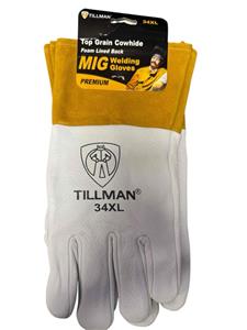 NEW TILLMAN 34XL X-LARGE PREMIUM TOP GRAIN COWHIDE FOAM LINED BACK MIG WELDING GLOVES. 4" CUFF