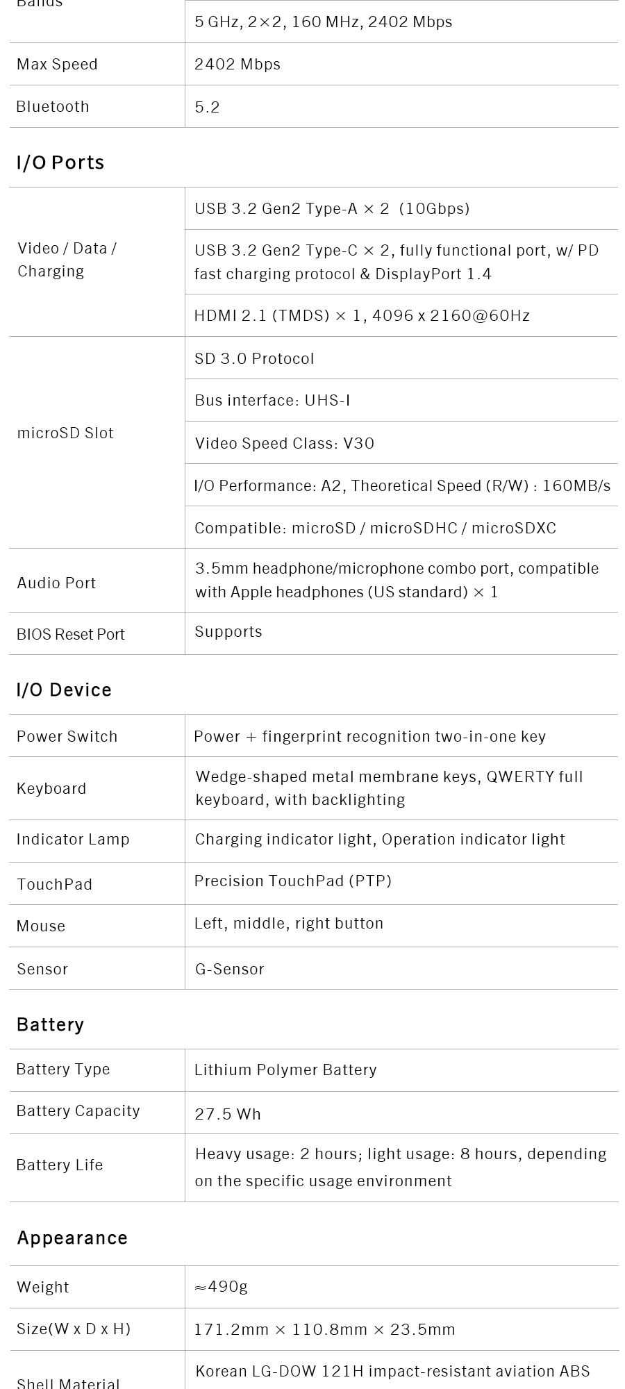 Storage Expansion: 1x microSD (TF) card reader