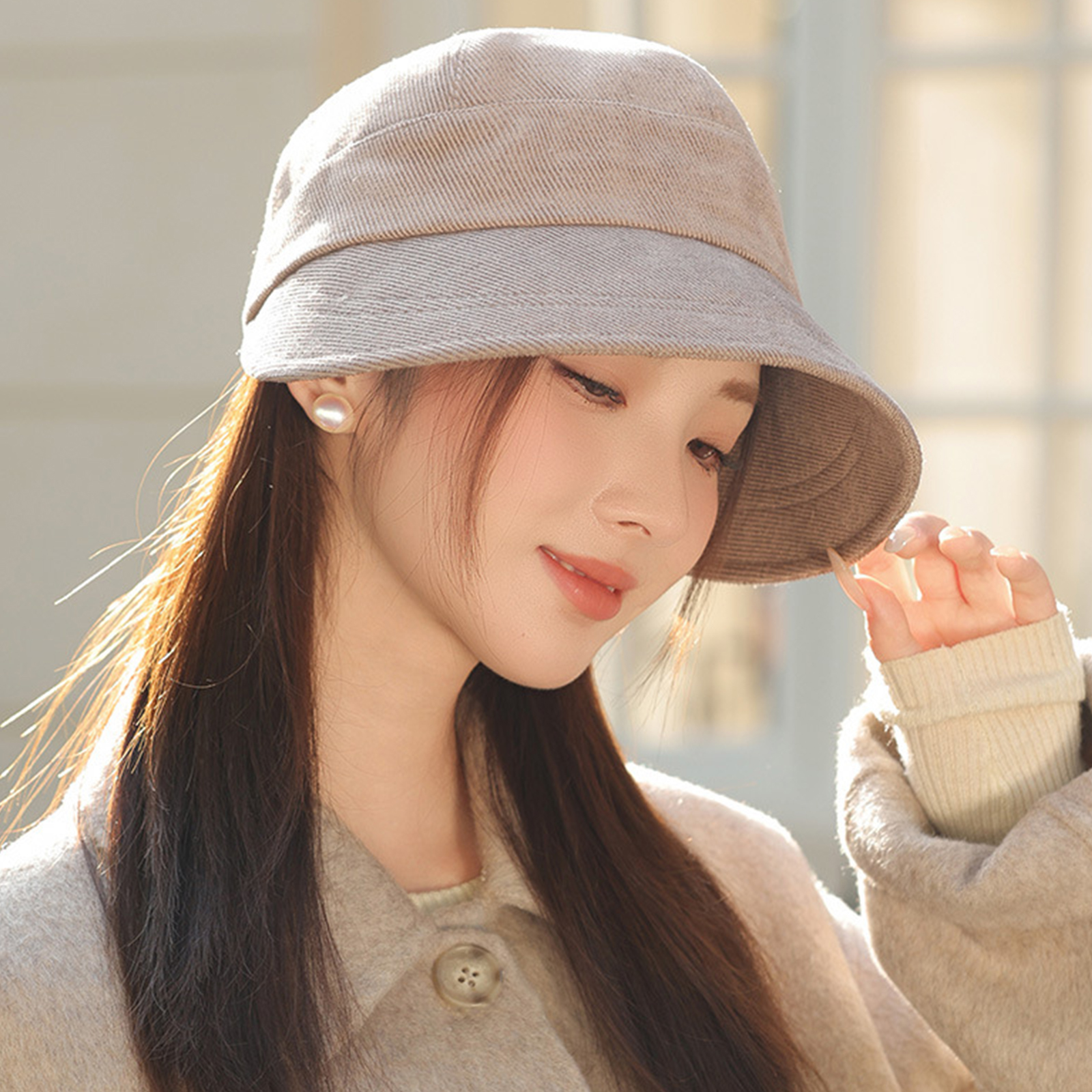 Women Fashion Korean Style Wide Brim Warm Bucket Hat Riding hatfor Fall Winter