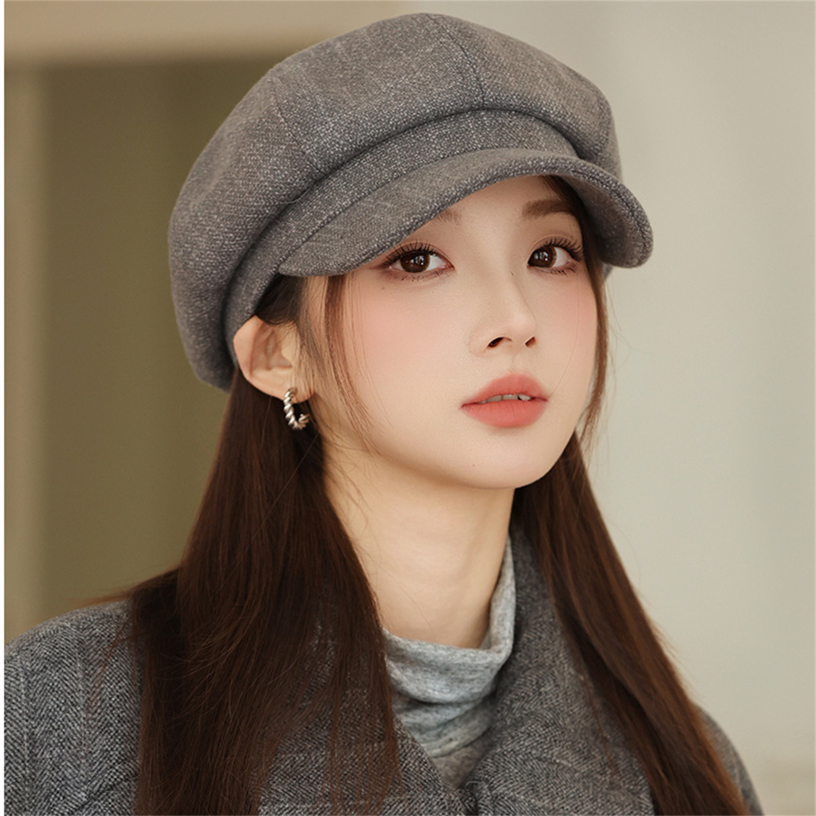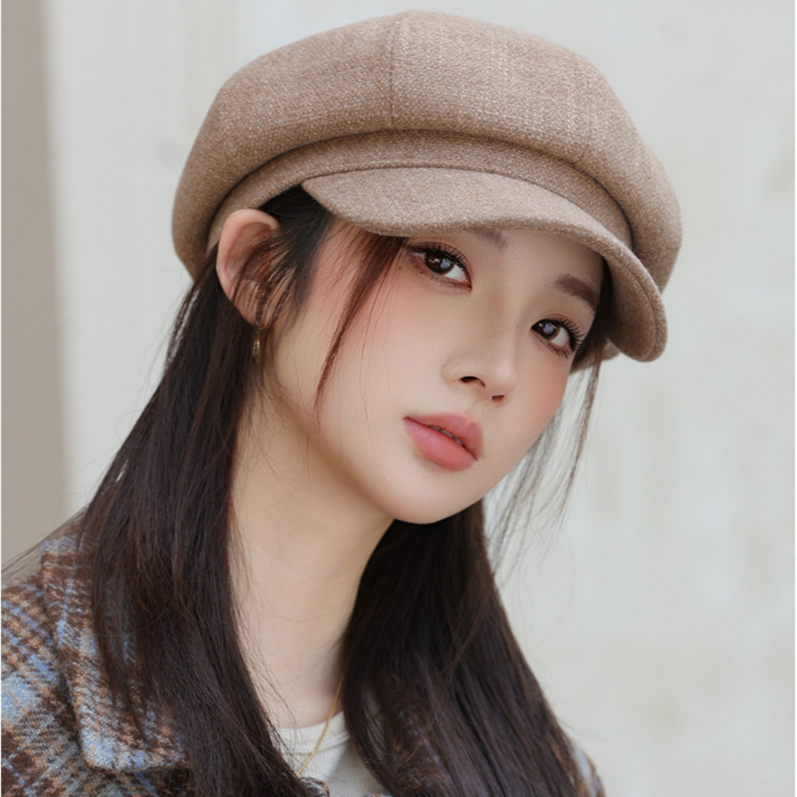 capturing the essence of the classic newsboy/bakerboy style. It blends vintage charm with contemporary fashion.