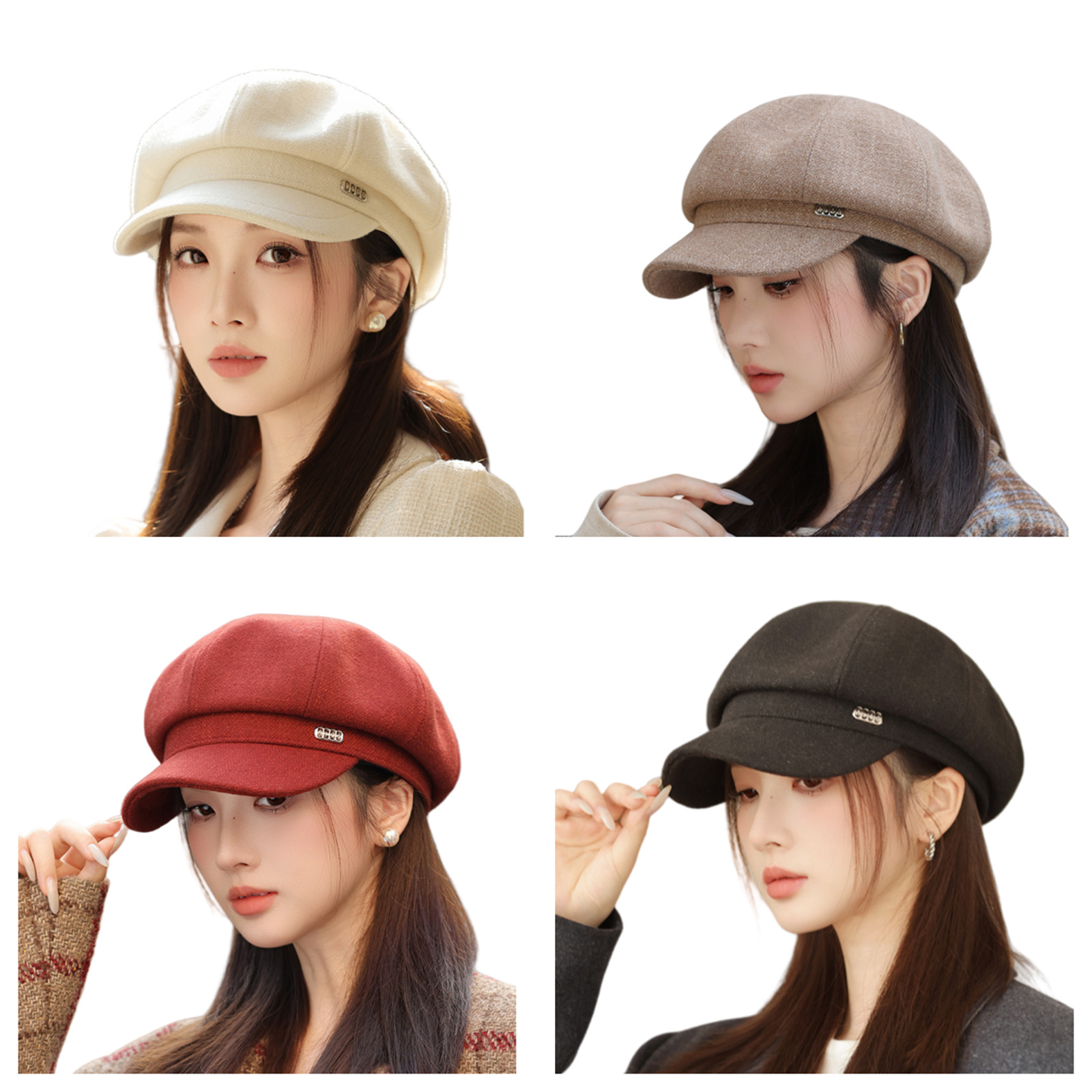 3.Classic Newsboy Style: The women's newsboy caps showcases a timeless 8-panel crown design with a center button,