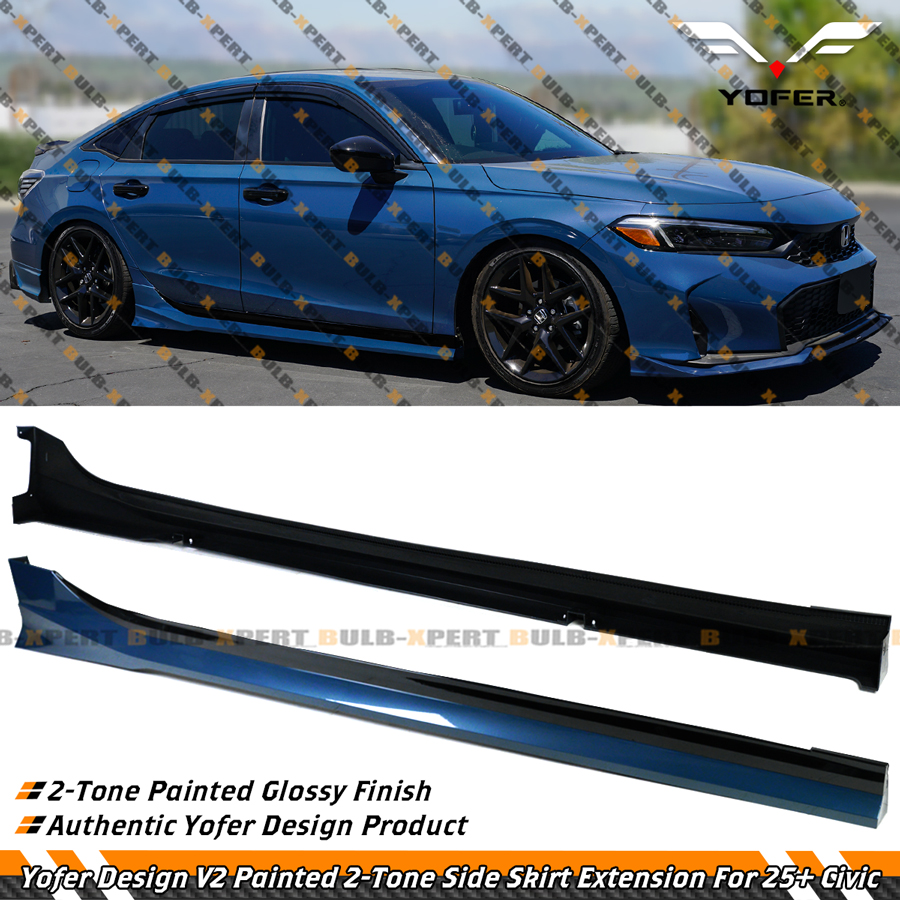For 2025-26 Honda Civic Yofer V2 Lagoon Pearl Blue 2 Toned Side Skirt Extension
