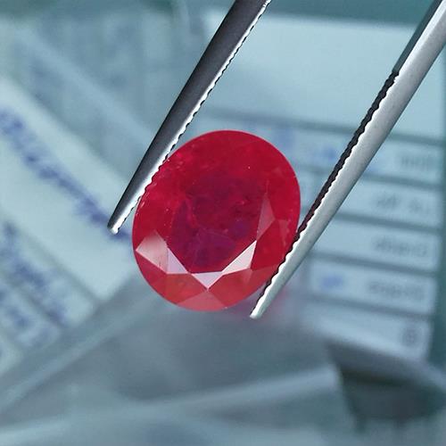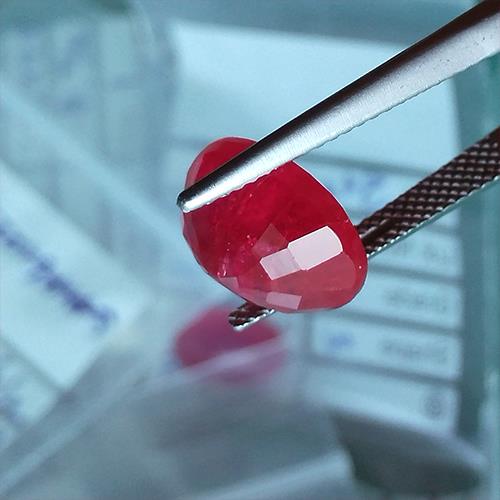 DESCRIPTION | GEMSTONE Gemme | Ruby | QUANTITY Quantite' | 1 Piece (s) | WEIGHT Poids | 11.05 cts. | DIMENSION Dimension | 14 x 11.8 x 6.8 mm. | SHAPE/CUT Forme | Oval ; Mixed | COLOR Couleur | Red | CLARITY/GRADE Clarte' | Translucent | LUSTER Lustre | Stunning | TREATMENT Traitement | Diffusion |