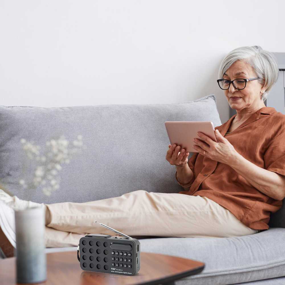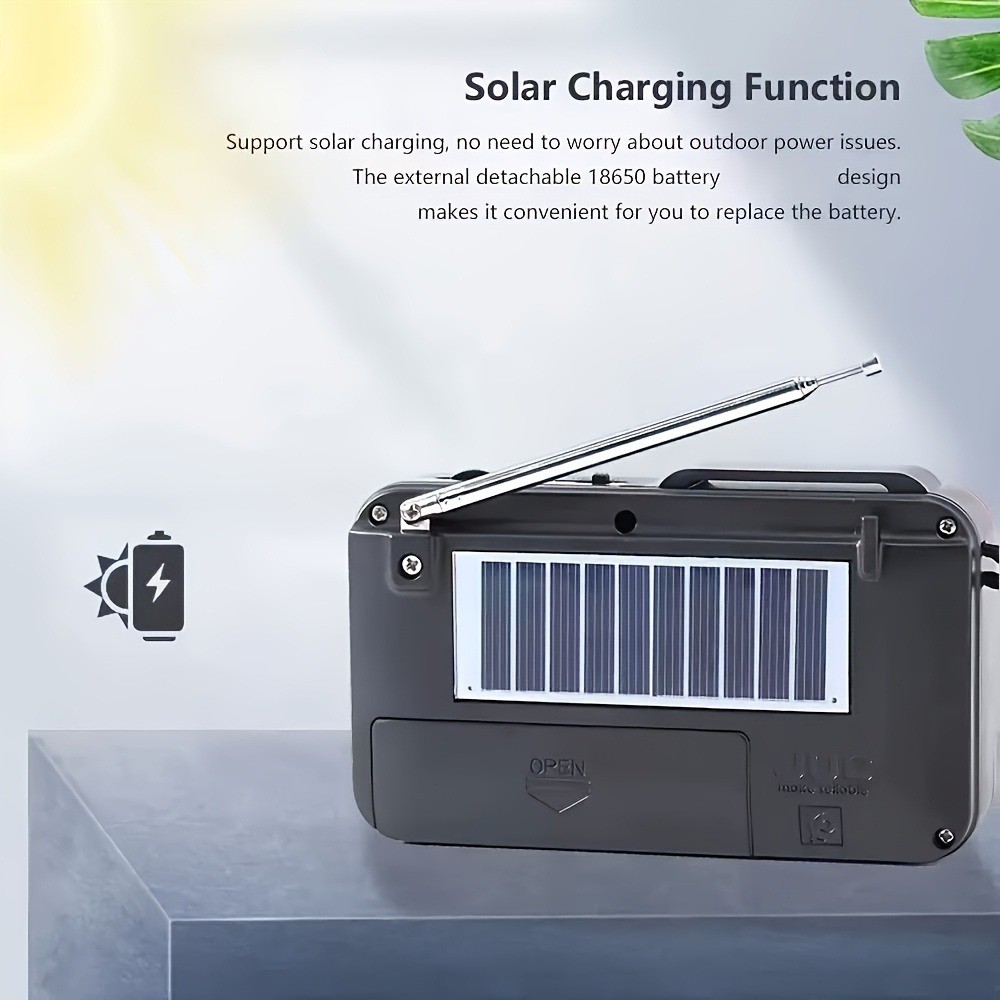 4. Two Power Supply Options: The small pocket radio comes with a built-in rechargeable battery, which can be charged using a data cable, providing up to 8 hours of working time. In outdoor emergency situations, when power might be out, the solar panel (positioned under strong sunlight or UV light) can charge the radio, ensuring continuous usage.