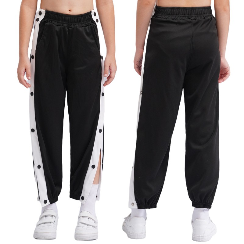 Sport pants for boys, side split design with press buttons, which is easy to adjust into a comfortable wearing state.