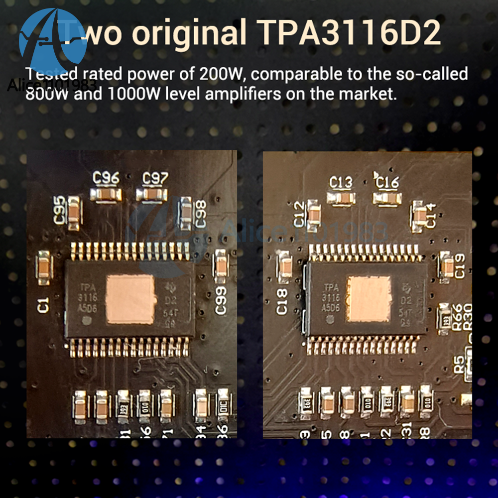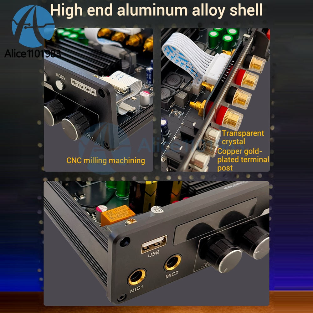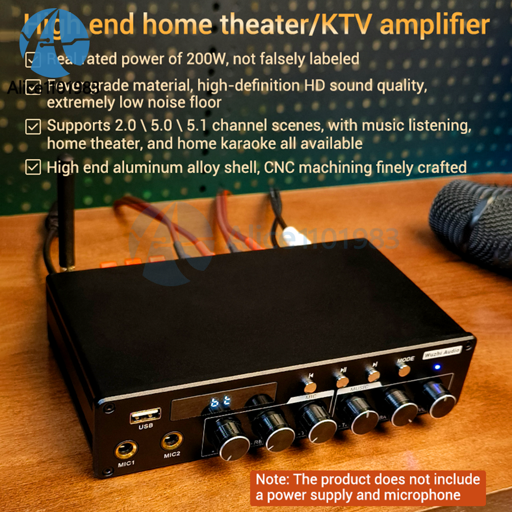 Product Description: Adopting exquisite high-end aluminum alloy shell; High definition HD sound quality, extremely low background noise; Free combination of speakers to create 2.0/5.0/5.1 scenes, suitable for listening to music, home theater, and home karaoke; Rated power of 200W, not falsely labeled. Tip: Only when the audio signal input is large enough and the power supply voltage/current is large enough, will there be sufficient output power! The higher the power supply voltage, the greater the output power, and the smaller the speaker impedance, the greater the output power! Please ensure that the power of the adapter is greater than the actual working power of the amplifier!