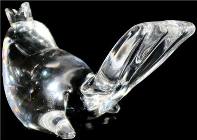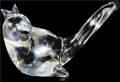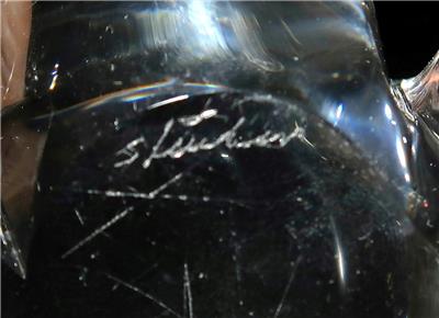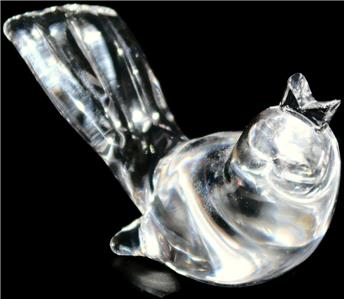 You have found the missing piece to your art glass collection! Here is the STEUBEN art glass SONGBIRD. Designed by George Thompson in 1963, it features a charming little bird with its head and tail tilted high, singing a cheerful song. This delightful piece measures 3" high by 5" long by 2 1/4" wide. It is signed Steuben on the underside. In excellent preowned condition, it is ready for its new home. Please see our Not Just China Store for more art glass and other collectibles.