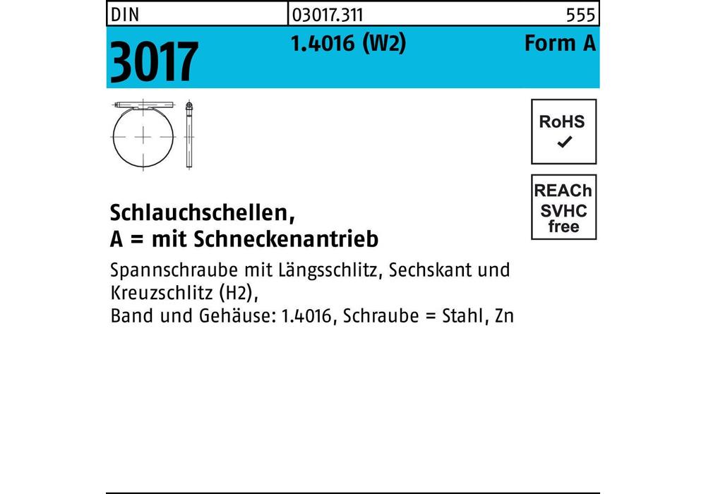 DIN 3017 1.4016 (W2) Form A Schlauchschellen · mit Schneckenantrieb - Abmessung: 90-110/ 9 C7 VE=S (25 Stück )Weitere technische Eigenschaften: