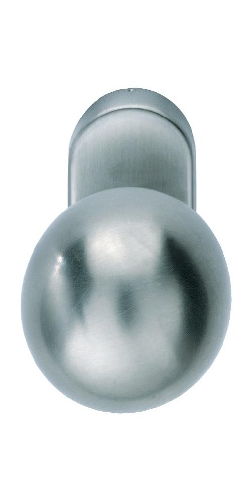Rahmentür-Kugelknopf gerade, auf ovaler Rosette mit unsichtbarer Befestigung für Senkschrauben M5 (Schraublochabstand 50 mm) mit Hochhaltefeder · mit 8 mm Lochung (Standard-Vierkant) fest/drehbar gelagert oder M12 mm feststehend · DIN links / rechts · Lieferung ohne Stift und SchraubenWeitere technische Eigenschaften: