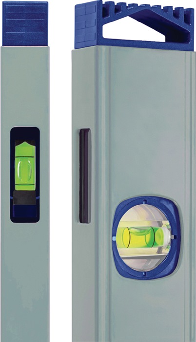 aus Aluminium · Oberfläche silberfarbig pulverbeschichtet · vergrößerte horizontale Libelle für schnellere Erkennbarkeit des Messergebniss · patentierte Spiegellibelle - Draufsicht auf die vertikale Libelle · gefräste Messfläche bis Länge 120 cm · Messgenauigkeit in Normalposition ± 0,5 mm/m, in Umschlagposition ± 0,75 mm/mWeitere technische Eigenschaften: