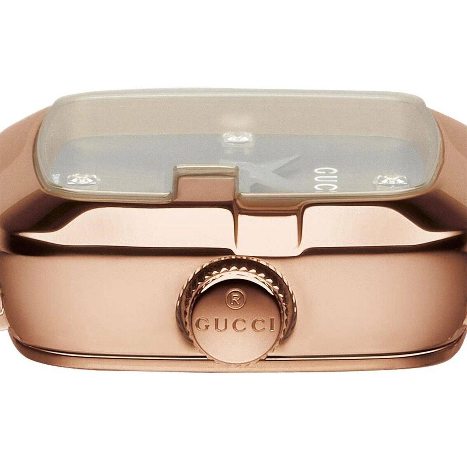 Water resistant to 30m and powered by a quartz movement, this Gucci G Collection rose gold plated ladies watch will add luxurious glamorous to every outfit.
