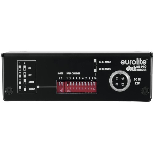 Mit dem EUROLITE DXT-ME PRO DMX-Merger wird der parallele Betrieb von zwei Lichtpulten an einem gemeinsamen DMX-Universum zur professionellen und vor allem zuverlässigen Lösung. Ob bei komplexen Bühnenshows, Festivalproduktionen oder in festen Installationen – der DXT-ME PRO bringt maximale Flexibilität und Kontrolle in jede DMX-Infrastruktur. Gefertigt in Deutschland und untergebracht in einem kompakten Metallgehäuse, ist dieses Gerät für den rauen Live-Einsatz gemacht und garantiert eine störungsfreie Verbindung auch unter anspruchsvollen Bedingungen.