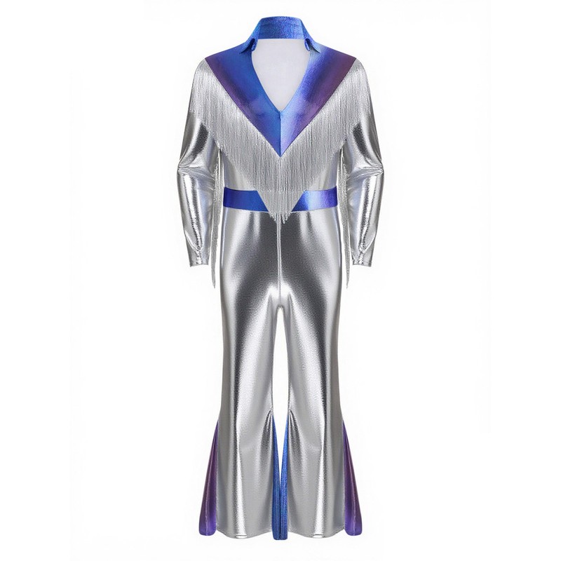 Die Quasten und die ausgestellten Ärmel verleihen ein Gefühl von Verspieltheit und Einzigartigkeit und passen perfekt zum Disco-inspirierten Stil.