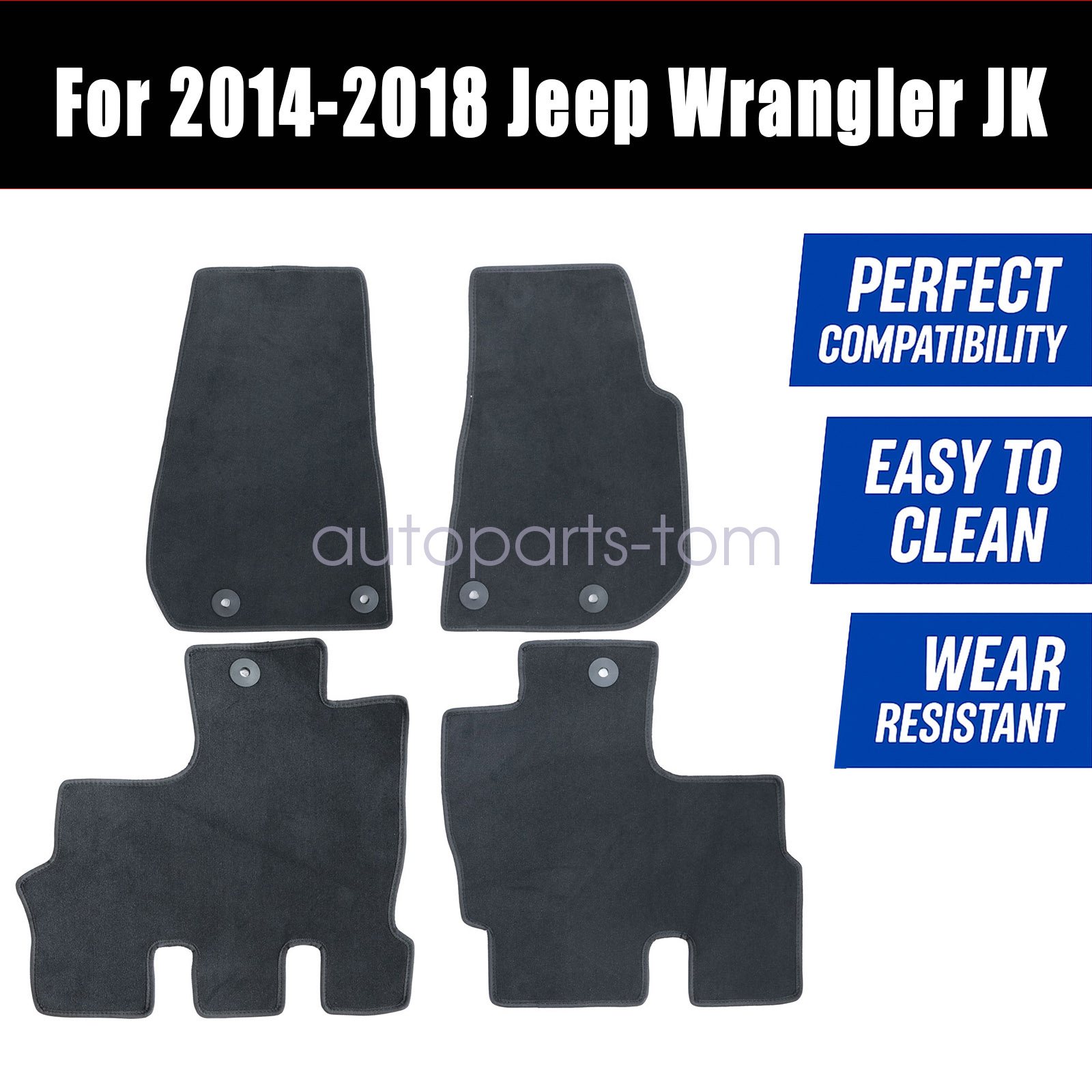 Replacement Black Velour Front & Rear Floor Mats Carpet Fits 2014 2015 2016 2017 Jeep Wrangler