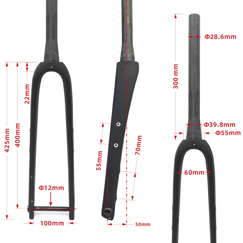 Steerer Tube Size:Taper ,Top 1-1/8" (28.6mm), Down 39.8mm, 300mm Lenght ,