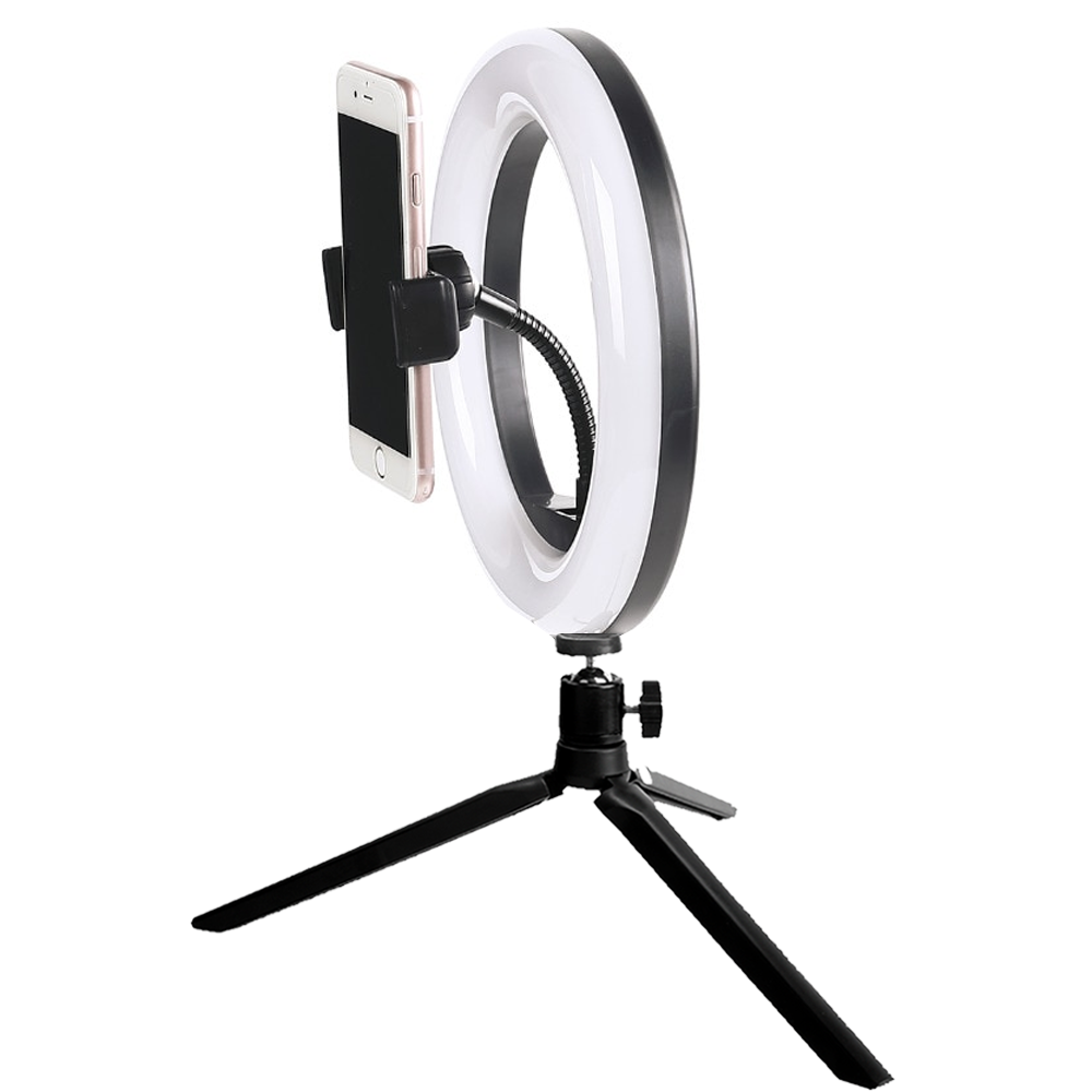 The VivitarRL-8 8" Inch LED Ring Light is perfect for makeup artists, vloggers and influencers. Its balanced and evenly diffused lighting brings out detail and eliminates harsh shadows. An easy to use push button digital control for adjusting 10 levels of brightness and 3 levels of color temperature 2800K, 4500K, 6500K. The built-in 6 foot long USB cable provides ample flexibility in any environment. The RL-8 can be used as a studio fill-light and to create an attractive circular ‘catch light’ in the subjects eyes. Also great for close-up macro shots, product and food photography and detailed table-top work. The unit can mount onto any tripod or light stand via the 1/4-20" socket on the underside. Three outer shoe-mount slots provided on top and sides for mounting additional accessories. It is fully compatible with cameras, video camcorders, DSLRs and all smart phones.  Conveniently powered by any USB plug (not included) USB port in desktop or laptop computers or portable power banks.