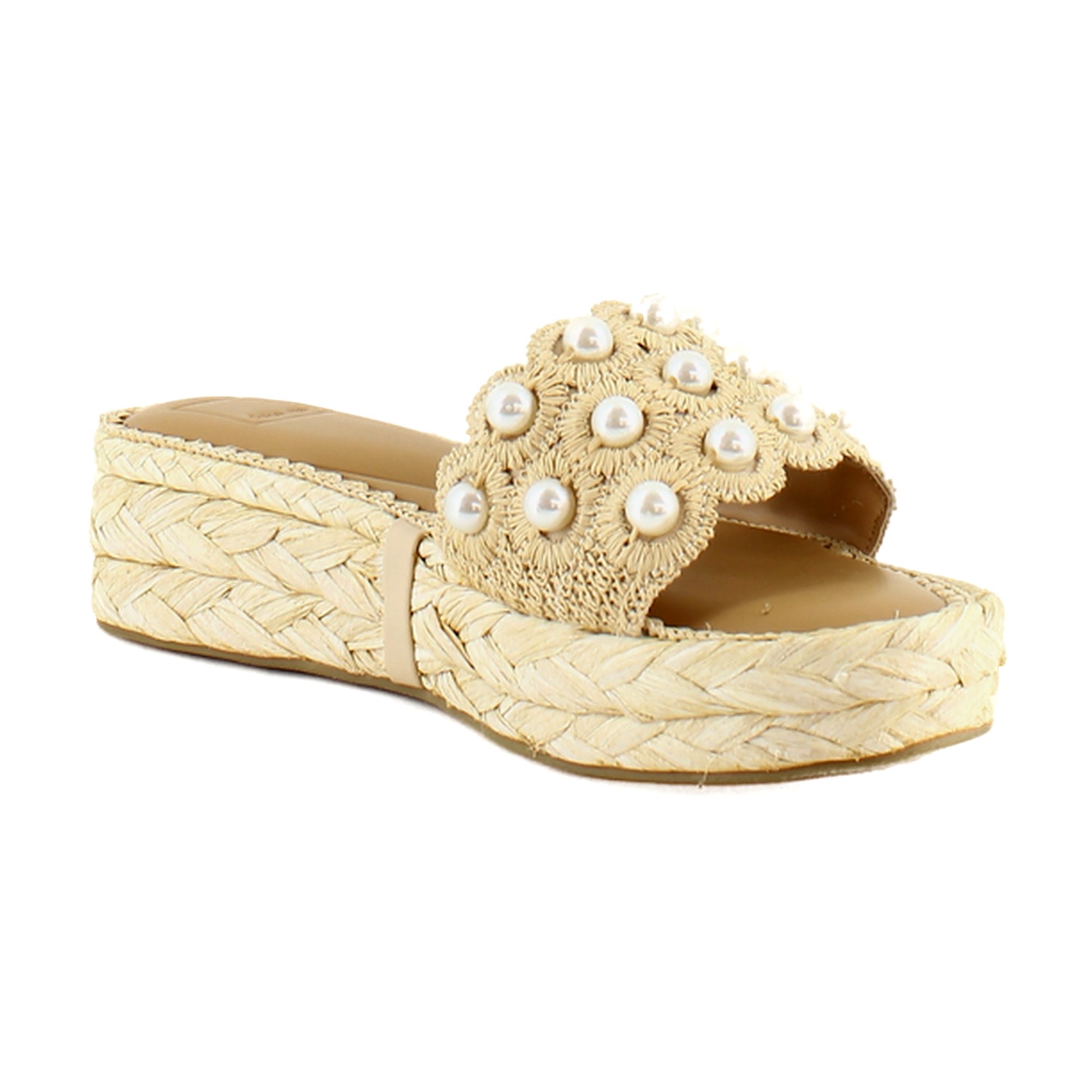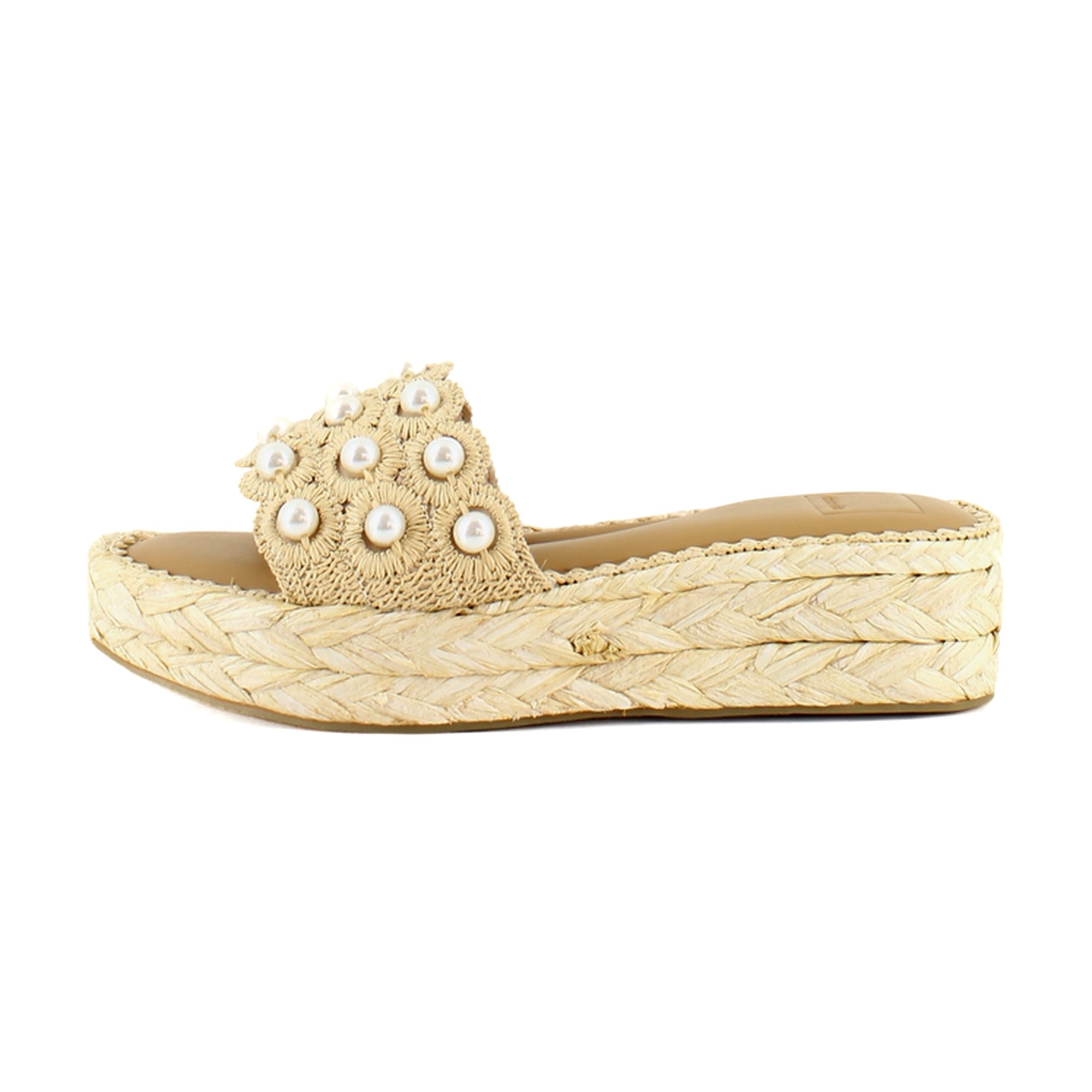 Slip into the elegance of Dolce Vita's Caper Pearl Platform Slide Sandals. These chic slip-ons boast a raffia upper adorned with shimmering pearl embellishments, offering a perfect blend of style and comfort. With their neutral tone and easy, slip-on style, they're the ideal choice for a casual day out or a glamorous evening affair.