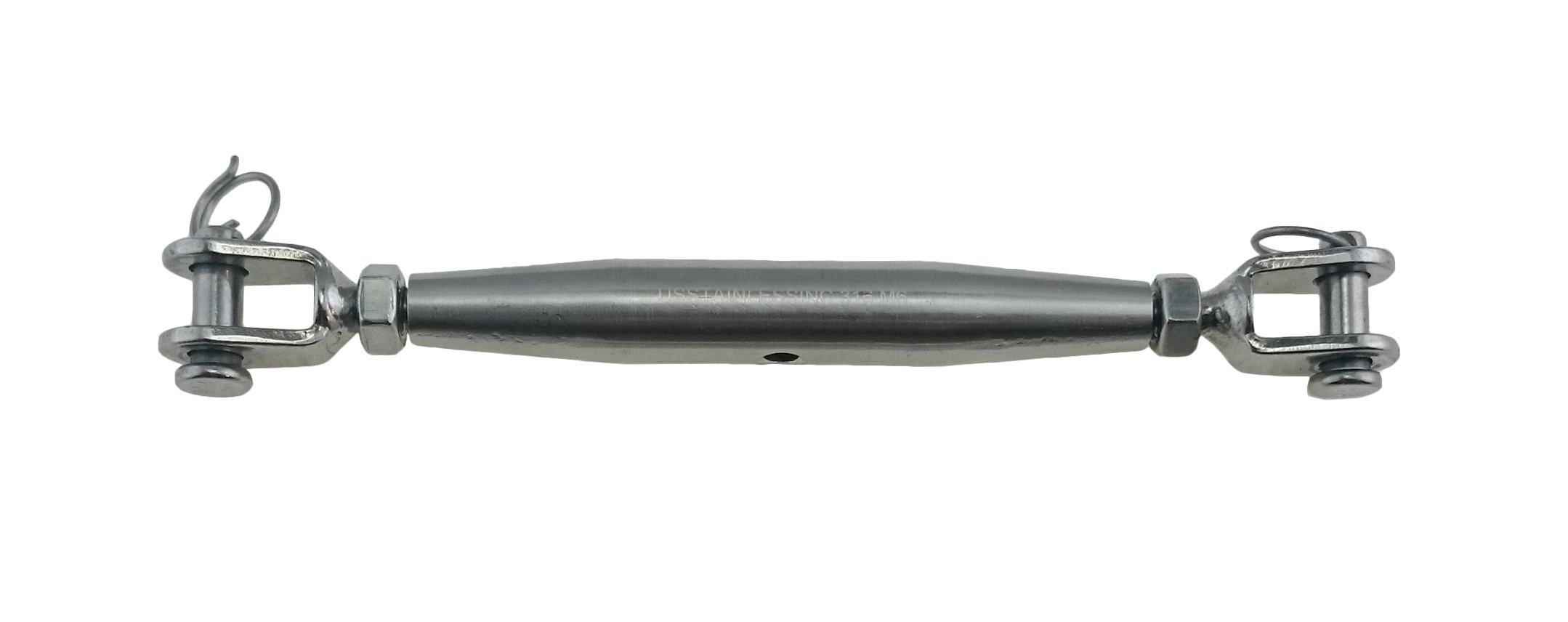 This is for one (1) quality marine grade stainless steel (AISI 316) M6 turnbuckle rigging screw with jaw and jaw. Each turnbuckle is laser etched with the grade of 316 and the size of M6. The imperial equivalent is generally considered to be 1/4". Each turnbuckle comes with a locking nut on each end. Not to be used for overhead lifting. AISI 316 stainless is a premium grade of stainless and is considered by many to be best in class. 316 stainless is corrosion resistant and very durable even in the harshest of conditions. Breaking Load 3080lbs. Working Load Limit 770lbs.