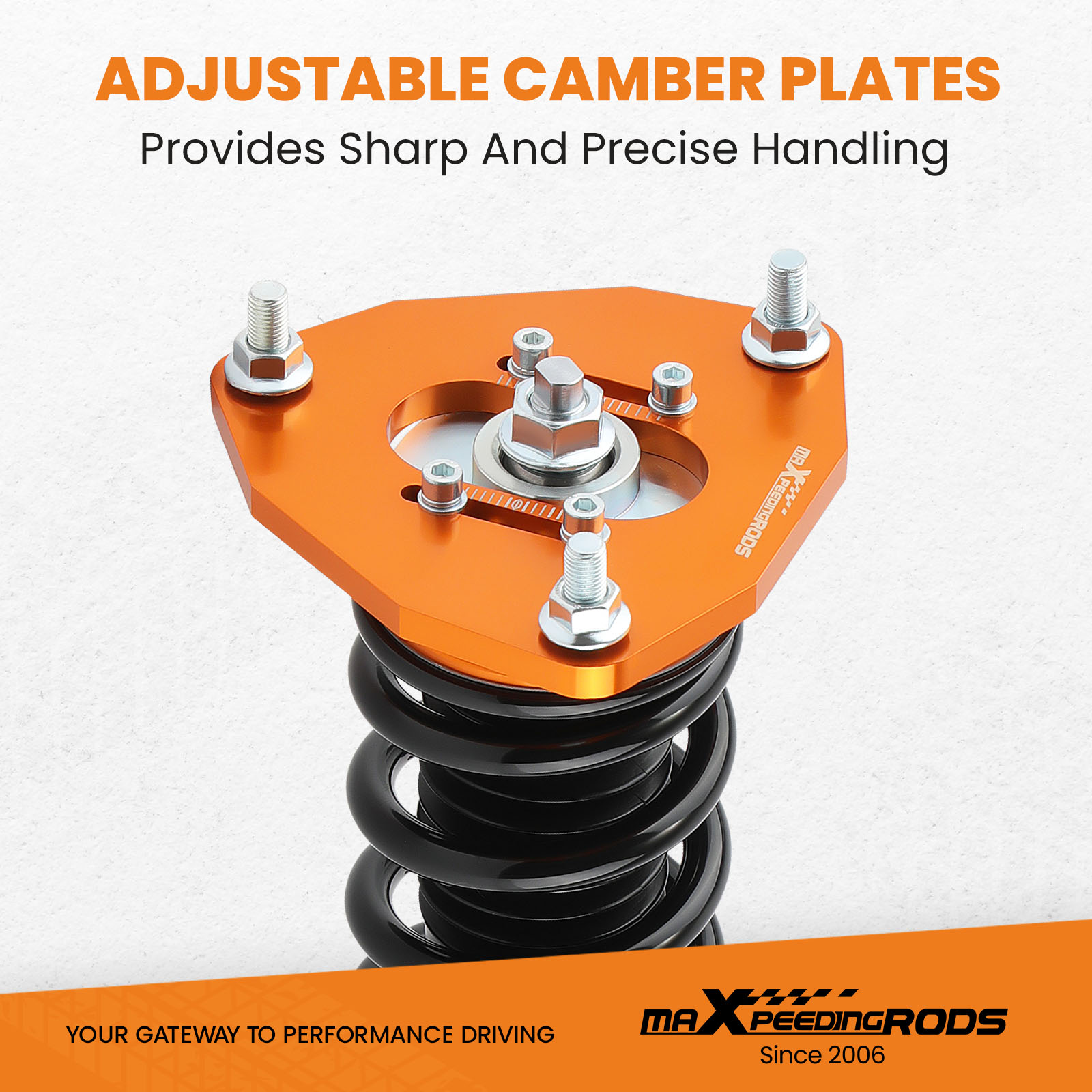 3. Adjustable Camber Plate and Pillow ball top mount for sharpening steering response.( for some models)