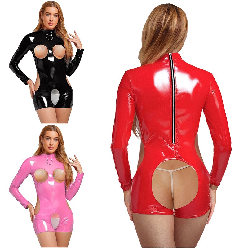 The long-sleeve hollow-out cup and open-crotch design create a seductive and alluring style, highlighting the feminine charm and increasing the allure.