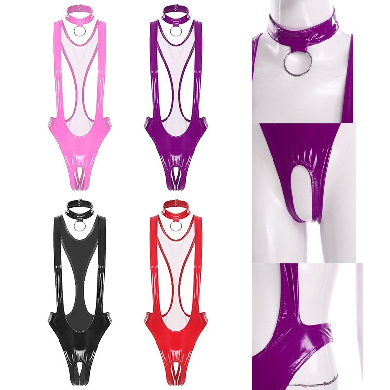 Womens See-through Mesh Crotchless Bodysuit Hollow Out Halter Backless Leotard Lingerie Nightwear.