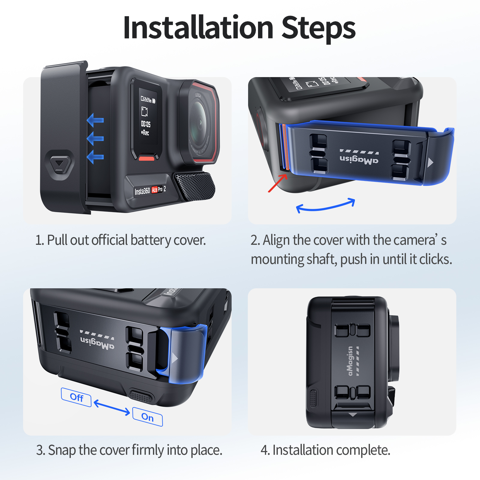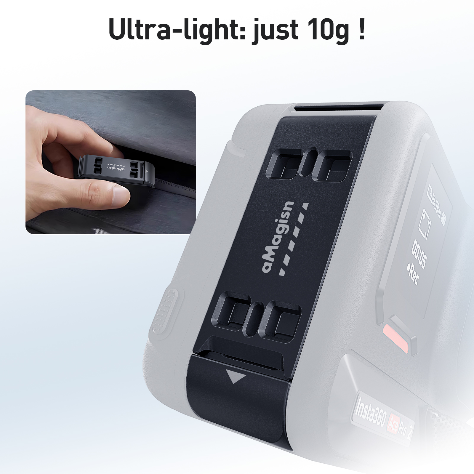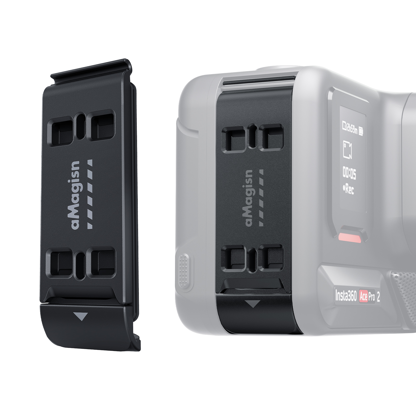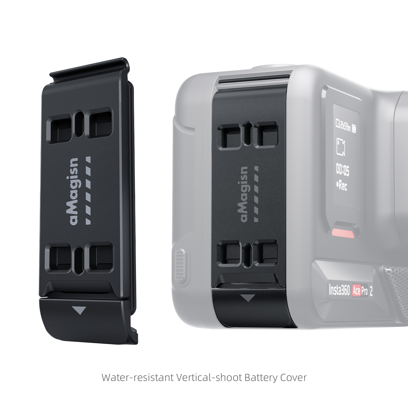 1. The battery cover features a quick-release mounting interface for the Ace Pro 2, allowing direct installation on the Ace Pro 2's quick-release mount without needing a cage, enabling vertical shooting.