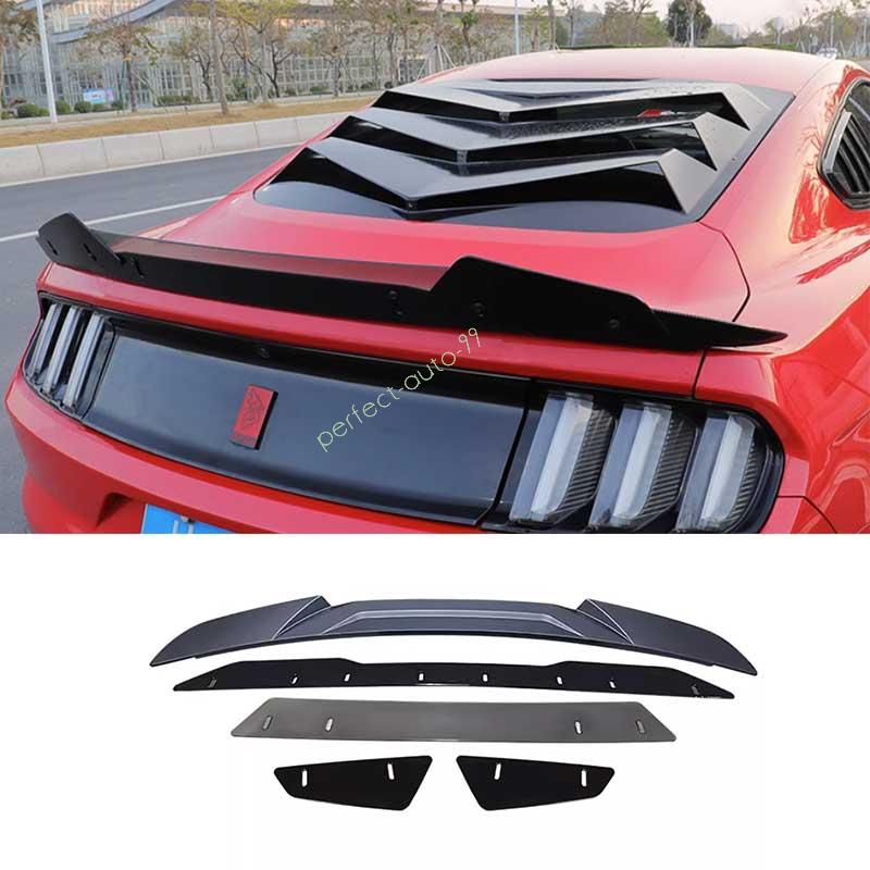 For Ford Mustang 15-23 Transparent Primer Black Rear Trunk Spoiler Wing Flap Bar