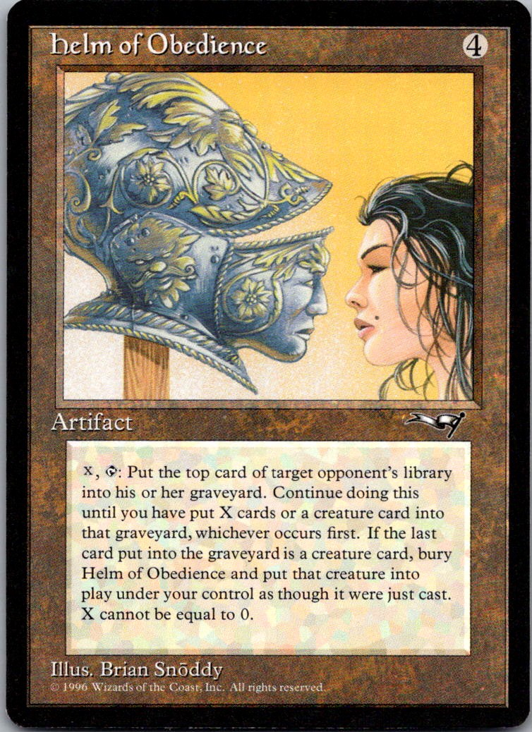 | Description: | Helm of Obedience | | Category: | Magic | | Year: | 2008 | | Product: | Magic the Gathering | | Set: | R | | Team: | Masters/Rare | | Card Number: | 210 | | Dimensions: | 3¼" x 2¼" | | SKU: | MG B0001 R01 I (68) |